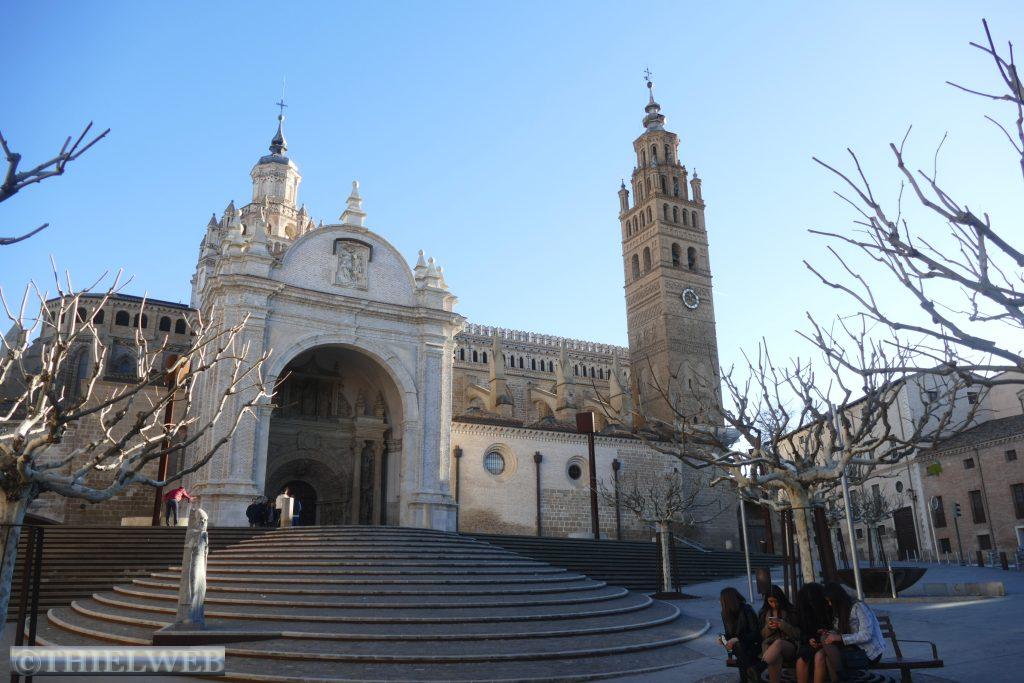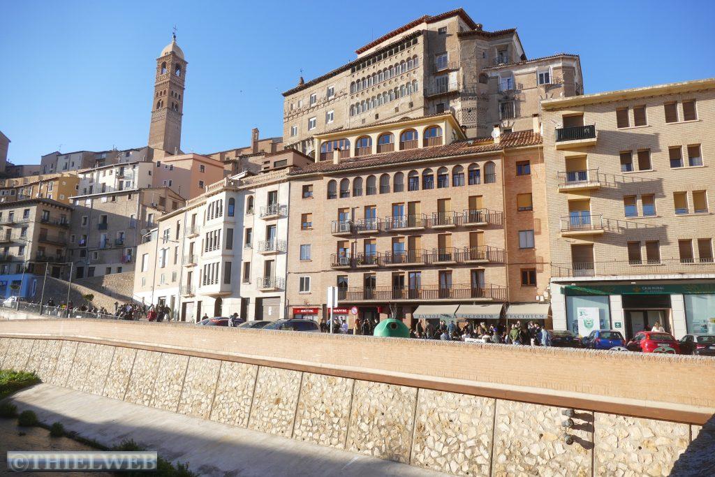 Im Anschluss fahren wir weiter nach Tarazona, die Mudejarstadt in Arragon. Wir schauen uns die Stadt an und beginnen an der Kathedrale und die Plaza de Toros Vieja. Die ehemalige Arena ist von dreistöckigen WohngebĂ€uden mit Balkonen umgeben. Die geschwungene Gasse Calle de los Recodos fĂŒhrt zum Bischofspalast Palacio Episcopal, der neben der Kirche La Magdalena, dem Ă€lteste GebĂ€ude der Stadt liegt. Der Glockenturm aus Backstein im MudĂ©jar-Stil ist das Wahrzeichen von Tarazona.