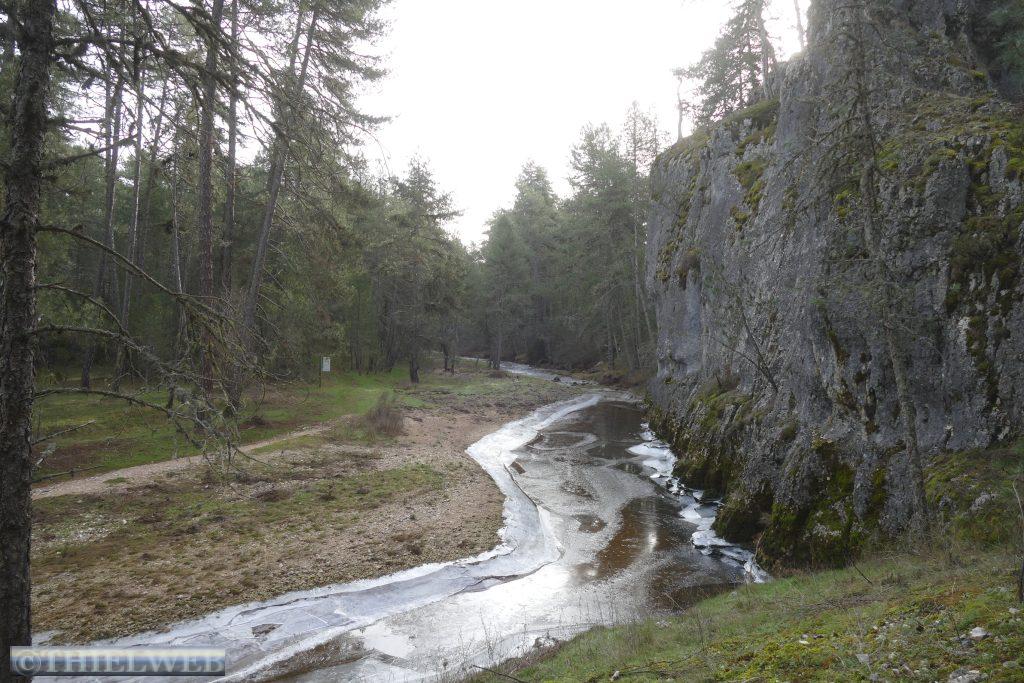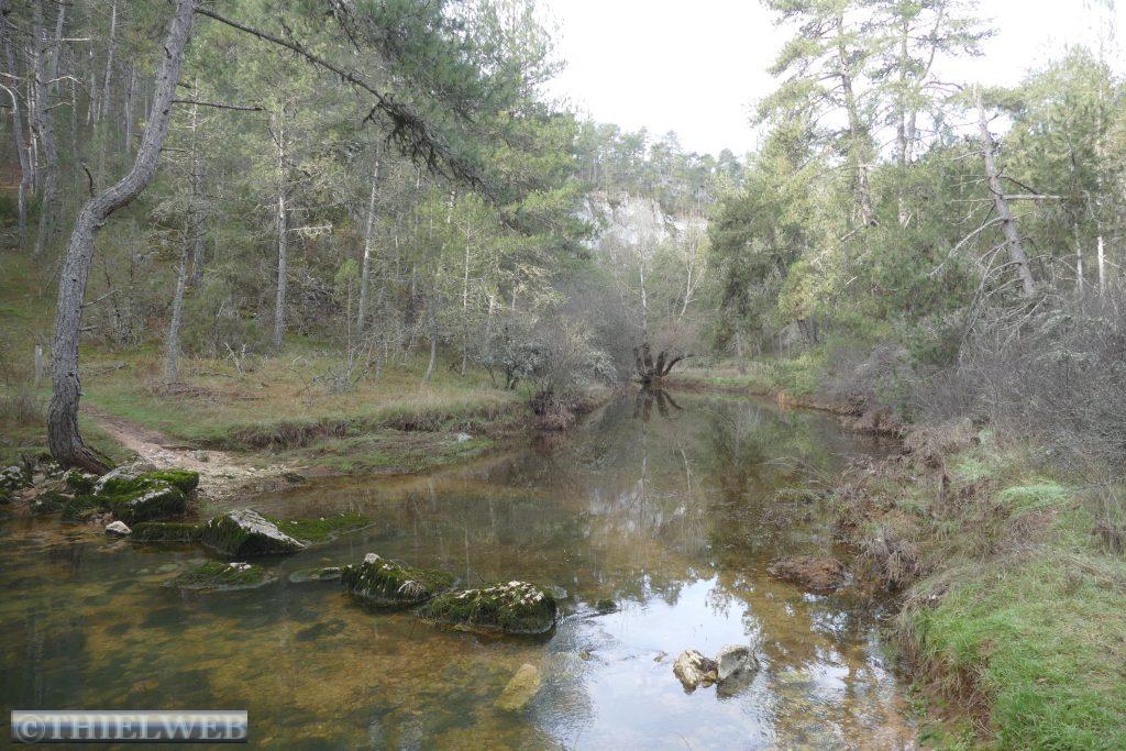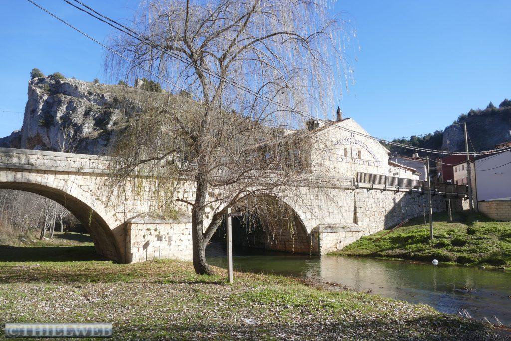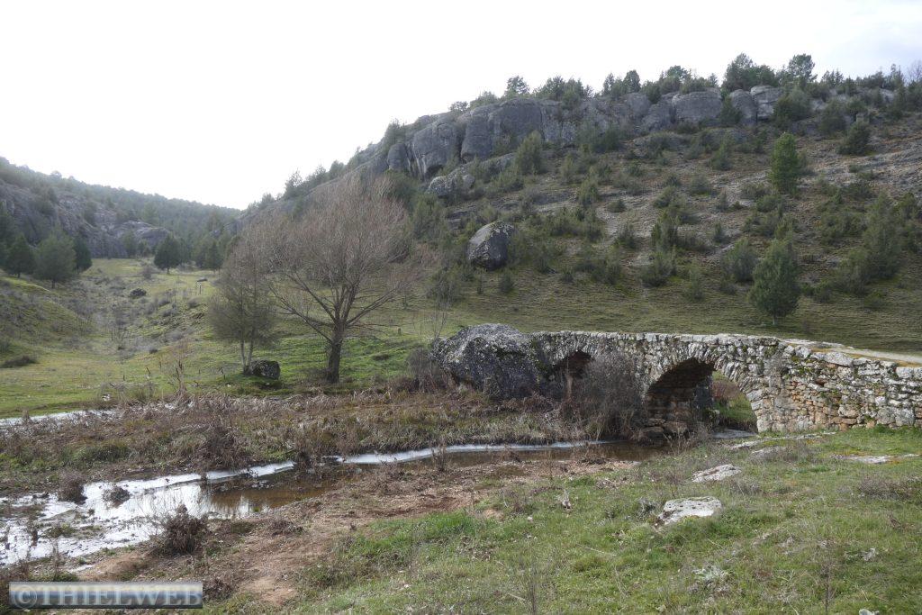 Unser Weg fĂŒhrt uns zuerst zum Supermarkt, um Brot zu kaufen. Dann starten wir auf dem Wanderweg Senda de Hontoria, der uns schon nach kurzer Zeit direkt durch das Tal des Lobos Canyon fĂŒhrt. Es ist ein wunderschöner Wanderweg, direkt am Fluss entlang. Vögel zwitschern und das Eis im Fluss bricht krachend. Nach einem Abzweig mĂŒssen wir mehrmals den Fluss queren. Bei der letzten Biegung hat der Fluss so viel Wasser, dass es schwierig wird, trockenen FuĂes hinĂŒberzukommen. Wir kehren bis zum Abzweig zurĂŒck und folgen dem schönen Waldweg PR-BU 5 der uns mit leichtem Anstieg aufwĂ€rts bringt. Dann steigen wir wieder nach Hontoria ab und queren den Fluss ĂŒber die römische BrĂŒcke.