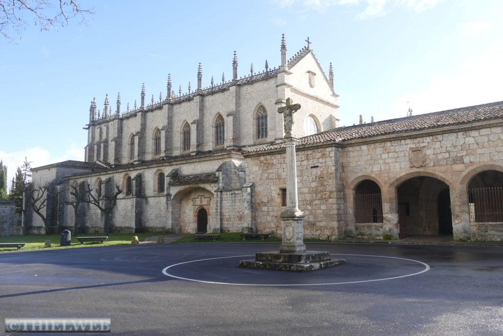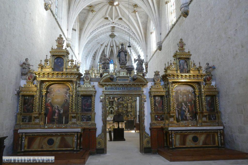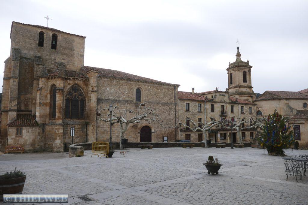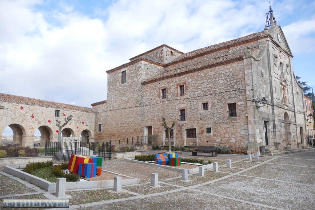 In der Nacht hat es geregnet und am Morgen ist es kalt und trĂŒb. Wir erledigen noch den letzten Einkauf und tanken fĂŒr 1.299 âŹ/l. Mittlerweile hat sich der Himmel aufgeklart und wir fahren zum ca. 3 km entfernten KartĂ€userkloster Santa MarĂa de Miraflores. Besondere SehenswĂŒrdigkeit ist die GrabstĂ€tte des Königs von Kastilien Juan II. und seiner Frau Isabella von Portugal. Im Anschluss geht es weiter Richtung SĂŒden nach Lerma, einem weiteren Pueblo mas bonito, dessen Silhouette schon bei der Anfahrt neugierig macht. Wir parken gleich neben der Puente Medieval und laufen zuerst zur Iglesia Colegiata de San Pedro. Hauptzugang zur Altstadt ist das Stadttor Arco de la CĂĄrcel. Die Calle Mayor fĂŒhrt uns zum Plaza Mayor, der zu den gröĂten Spaniens zĂ€hlt. Dominiert wird der Platz durch den Palacio Ducal, der heute ein Luxushotel beherbergt. Vom Mirador de los Arcos haben wir einen schönen Blick auf die Umgebung. Rechts und links vom Aussichtspunkt befinden sich die Kirche Juan de San Bautista und das Kloster AscensiĂłn de Nuestro Señor.