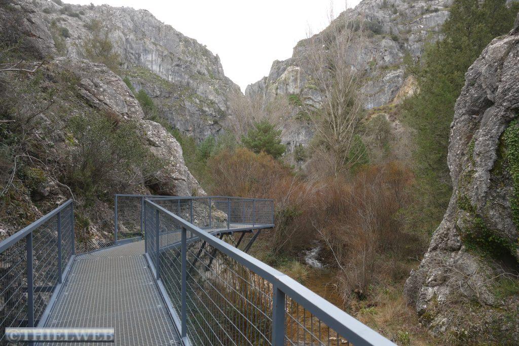Die Desfiladero de la Yecla ist eine tiefe Schlucht, deren Talgrund die Sonne kaum erreicht. Es ist eine der engsten Schluchten des Landes, mit einer LĂ€nge von ca. 600 m und einer Breite von knapp 2 m an den engsten Stellen. Die vertikalen WĂ€nde sind mehr als 100 m hoch. Hier leben Kolonien von GĂ€nsegeiern und anderen Greifvögeln. Ein Wanderweg mit einer Reihe von HĂ€ngebrĂŒcken und Gehwegen wurde installiert, auf dem wir unsere Wanderung auf der Ruta del Cid beginnen. Danach folgen wir der StraĂe bis Penacoba. Hinter dem Ort fĂŒhrt der Wanderweg durch ein schönes Tal. Unterwegs begegnen wir einem SchĂ€fer. Der Abstieg nach Santo Domingo de Silos bringt uns an der Statue Madre de todos los pueblos vorbei zur Ermita Virgen del Camino. Wir holen uns noch leckeres Brot und fahren nach dem Essen ĂŒber Covarrubias, wo wir entsorgen, nach Burgos.