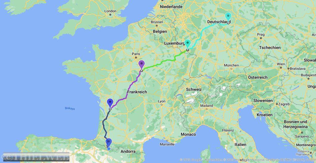 Am Morgen fahren wir, nachdem wir nochmal aufgetankt haben, bei dichtem Nebel aus Homburg ab. Es sind nur ca. 30 km bis zur Grenze nach Frankreich und schon sind die ersten blauen LĂŒcken am Himmel zu erkennen. Ăber schnurgerade Land- und NationalstraĂen fahren wir vorbei an Metz und Troyes ĂŒber Sens bis nach La Selle-en-Hermoy. Auf den abgeernteten Feldern suchen viele Kraniche nach Futter. Kurz bevor wir unseren Ăbernachtungsplatz erreichen, zieht wieder Nebel auf. FĂŒr die 435 km lange Strecke haben wir ca. 7,5 Stunden mit Pausen benötigt.