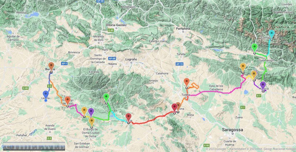 Wegen einer Schlechtwetterfront in den PyrenĂ€en Ă€ndern wir kurzfristig unseren Reiseplan und fahren nach Huesca. Auf dem Weg tanken wir unsere LPG-Flasche. Huesca ist die Hauptstadt der nördlichsten Provinz AragĂłn. Vom schönen Stellplatz laufen wir bei strahlendem Sonnenschein und 12 °C ins Zentrum zur auf einem HĂŒgel liegenden gotischen Kathedrale vorbei an der Kirche San Pedro el Viejo zum Turm der Stadtmauer. AnschlieĂend schlendern wir noch durch die EinkaufsstraĂen und durch den hĂŒbschen Stadtpark zurĂŒck zum Wohnmobil. Gut, dass wir die Richtung geĂ€ndert haben. Richtung Pamplona ist es kalt und es regnet.