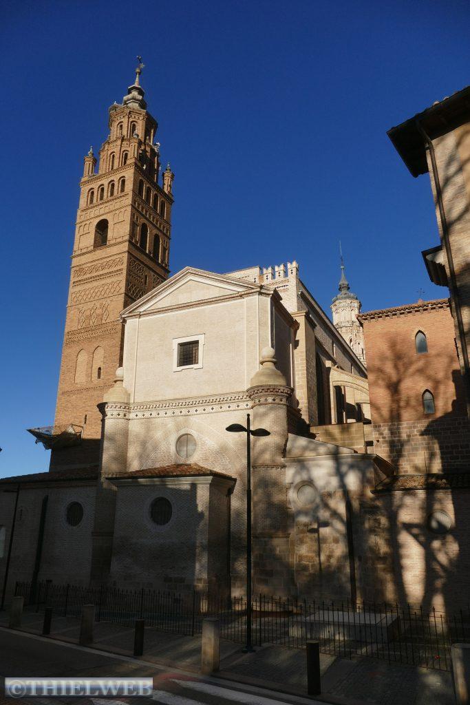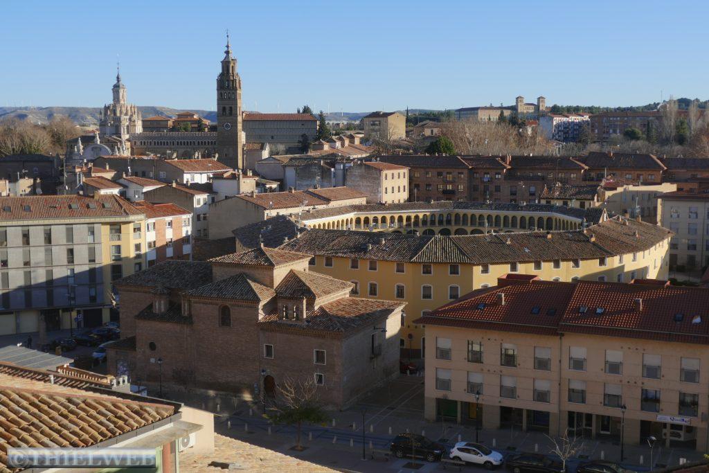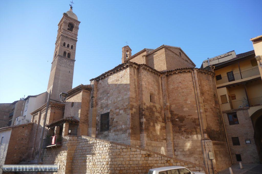 Im Anschluss fahren wir weiter nach Tarazona, die Mudejarstadt in Arragon. Wir schauen uns die Stadt an und beginnen an der Kathedrale und die Plaza de Toros Vieja. Die ehemalige Arena ist von dreistöckigen WohngebĂ€uden mit Balkonen umgeben. Die geschwungene Gasse Calle de los Recodos fĂŒhrt zum Bischofspalast Palacio Episcopal, der neben der Kirche La Magdalena, dem Ă€lteste GebĂ€ude der Stadt liegt. Der Glockenturm aus Backstein im MudĂ©jar-Stil ist das Wahrzeichen von Tarazona.