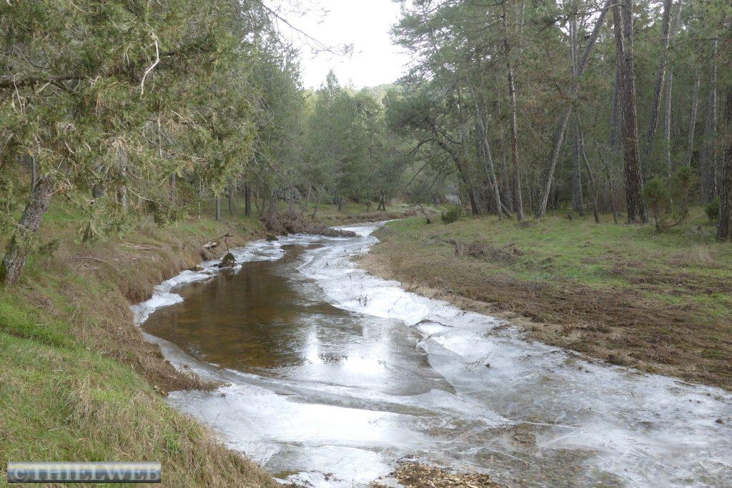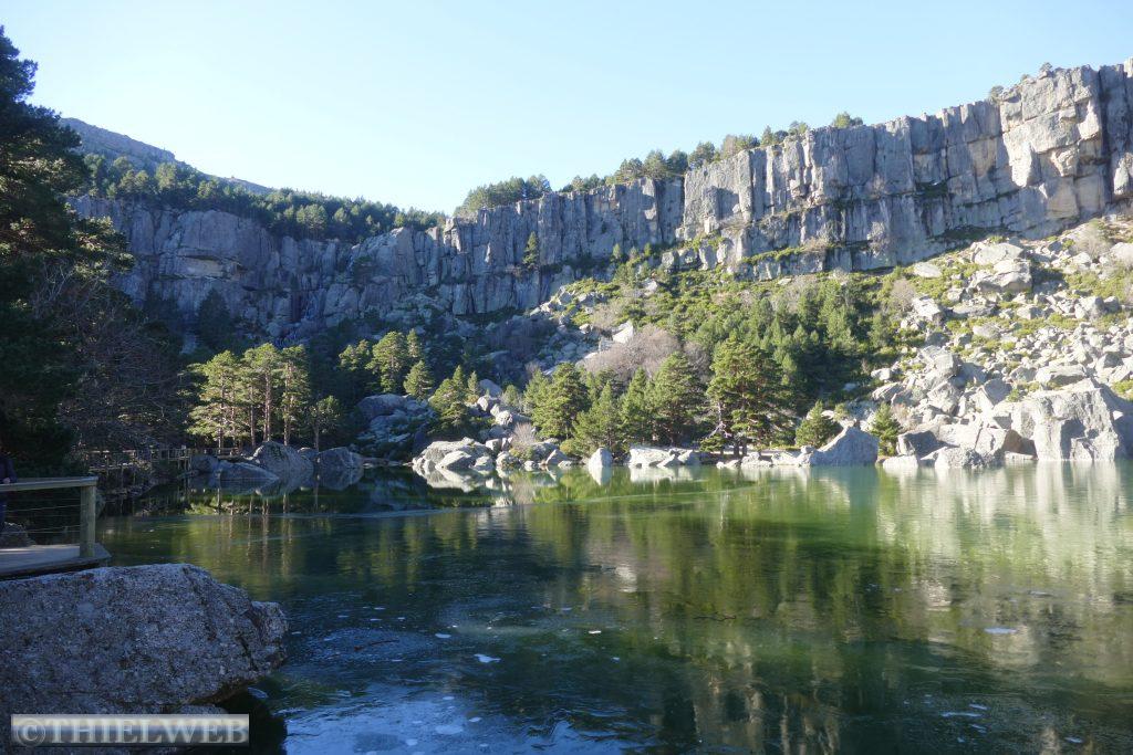Am Morgen glitzern die Eiskristalle bei den ersten Sonnenstrahlen. – 1° C, zum GlĂŒck nicht die vorhergesagten -6 °C. Wir lassen uns Zeit und fahren ĂŒber Vinuesa zur Laguna Negra, auf einer landschaftlich sehr schönen StraĂe klettern wir immer weiter bergan bis zum Parkplatz Paso de la SerrĂĄ. Die restlichen ca. 2 km zur Lagune gehen wir auf einem sehr schönen Wanderweg entlang des plĂ€tschernden FlĂŒsschens. Der See liegt auf ca. 2.000 m ĂŒ. d. Meeresspiegel inmitten von Pinienwald und umgeben von FelswĂ€nden aus Granit in einer der schönsten Landschaften der Provinz Soria. Der Wanderweg steigt hinter dem See weiter bergauf und man könnte an 2 weiteren Lagunen vorbei bis zum Gipfel des UrbiĂłn auf 2.228 m, einer der höchsten des Iberischen Gebirges, wandern. In dessen NĂ€he entspringt auch der Duoro. Wir klettern ca. 2/3 hinauf, dann kommen wir zu immer mehr ĂŒberfrohrenen Stellen. Das wird uns fĂŒr den RĂŒckweg zu heikel und wir kehren um.