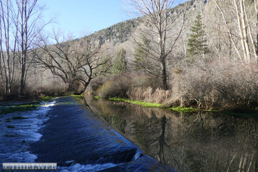 Unser Weg fĂŒhrt uns zuerst zum Supermarkt, um Brot zu kaufen. Dann starten wir auf dem Wanderweg Senda de Hontoria, der uns schon nach kurzer Zeit direkt durch das Tal des Lobos Canyon fĂŒhrt. Es ist ein wunderschöner Wanderweg, direkt am Fluss entlang. Vögel zwitschern und das Eis im Fluss bricht krachend. Nach einem Abzweig mĂŒssen wir mehrmals den Fluss queren. Bei der letzten Biegung hat der Fluss so viel Wasser, dass es schwierig wird, trockenen FuĂes hinĂŒberzukommen. Wir kehren bis zum Abzweig zurĂŒck und folgen dem schönen Waldweg PR-BU 5 der uns mit leichtem Anstieg aufwĂ€rts bringt. Dann steigen wir wieder nach Hontoria ab und queren den Fluss ĂŒber die römische BrĂŒcke.