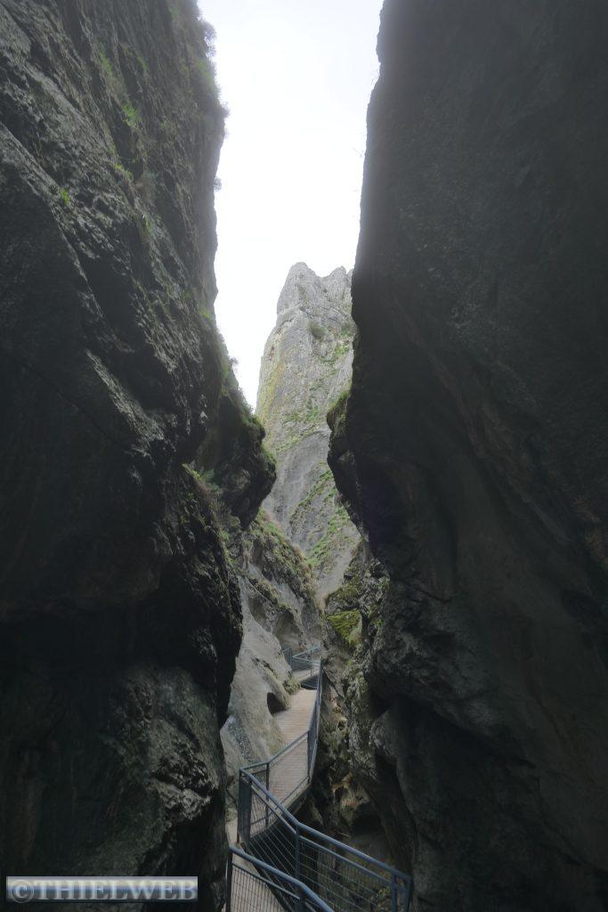 Die Desfiladero de la Yecla ist eine tiefe Schlucht, deren Talgrund die Sonne kaum erreicht. Es ist eine der engsten Schluchten des Landes, mit einer LĂ€nge von ca. 600 m und einer Breite von knapp 2 m an den engsten Stellen. Die vertikalen WĂ€nde sind mehr als 100 m hoch. Hier leben Kolonien von GĂ€nsegeiern und anderen Greifvögeln. Ein Wanderweg mit einer Reihe von HĂ€ngebrĂŒcken und Gehwegen wurde installiert, auf dem wir unsere Wanderung auf der Ruta del Cid beginnen. Danach folgen wir der StraĂe bis Penacoba. Hinter dem Ort fĂŒhrt der Wanderweg durch ein schönes Tal. Unterwegs begegnen wir einem SchĂ€fer. Der Abstieg nach Santo Domingo de Silos bringt uns an der Statue Madre de todos los pueblos vorbei zur Ermita Virgen del Camino. Wir holen uns noch leckeres Brot und fahren nach dem Essen ĂŒber Covarrubias, wo wir entsorgen, nach Burgos.