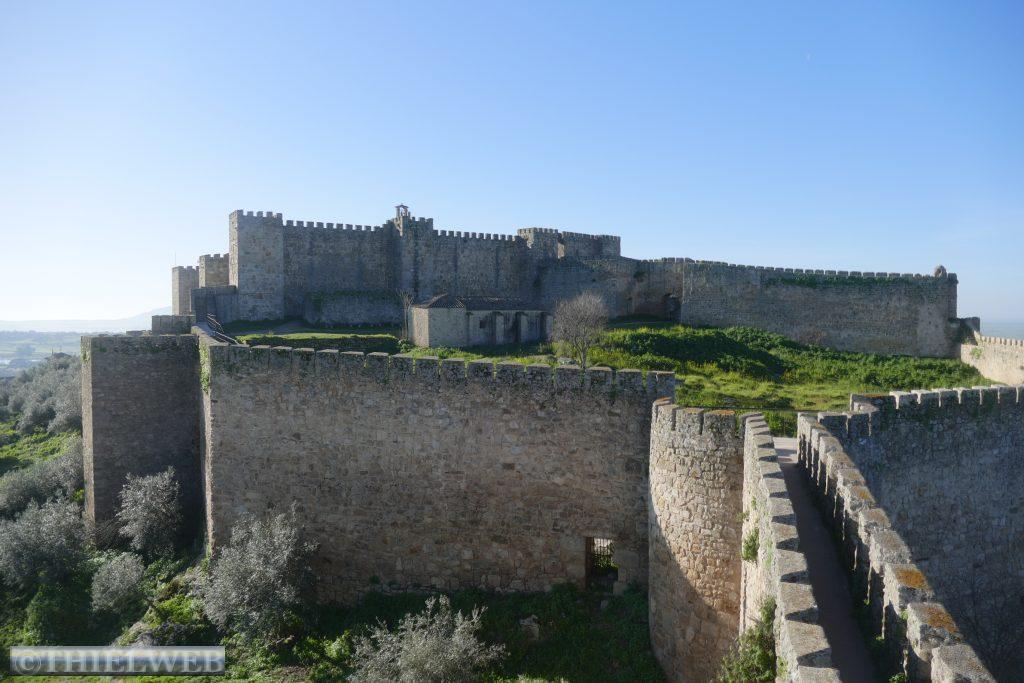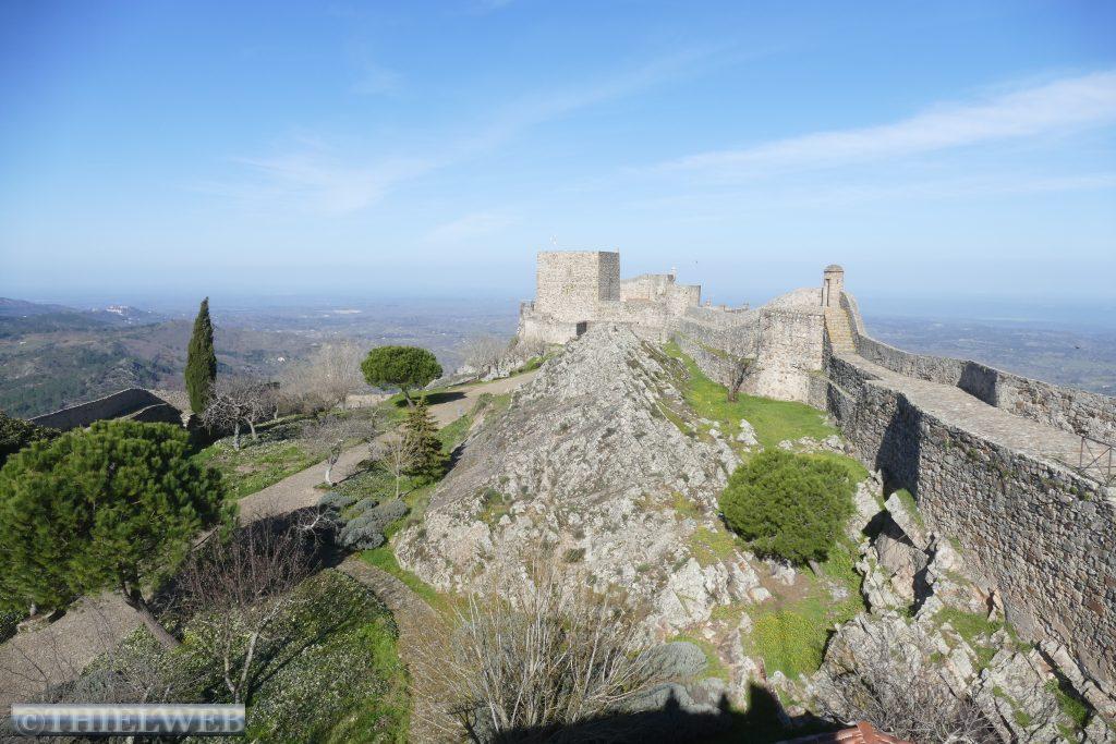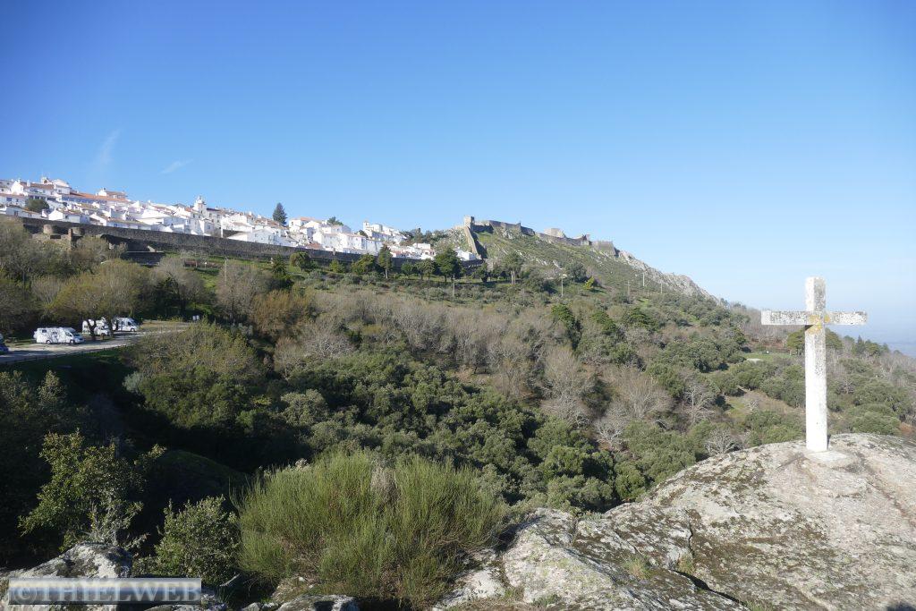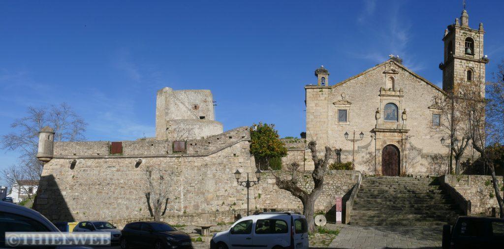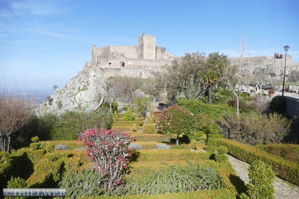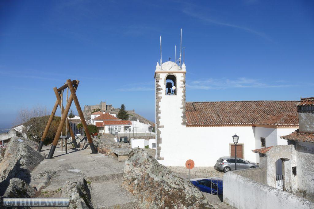 Am Morgen gehen wir zum Haupteingang, der Portas de Rodão, zum mittelalterlichen Stadtzentrum von Marvão und suchen zuerst das Touristenbüro auf. Wir schauen uns dann ein kleines Museum in der Casa Cultura an und gehen anschließend zum Castelo auf dem sogenannten Sapoio-Berg, der eine günstige natürliche Verteidigungsstellung bot. Das sehr gut erhaltene Bauwerk können wir fast rundum auf den Wehrmauern erkunden. Wir erklimmen den Fahnenturm und klettern auf den Hauptturm hinauf. Von hier haben wir einen Rundumblick auf das Dorf bis nach Spanien und auf die Serra de Estrela sowie bis nach Castelo de Vide und die Serra de São Mamede. Eine riesigen Zisterne sicherte für 6 Monate das Wasser im Fall einer Belagerung. Wir kommen zum Kirche Santa Maria, mit einem wunderschönen Gartenbereich. Entlang der schmalen Gassen erreichen wir die Igreja de Santiago und am Ende das Calvaro. Wir genießen es durch die Gassen mit den weißen Blumen geschmückten Häusern zu gehen und erreichen zum Schluss das Convento de Nossa Senhora da Estrela mit dem Cruzeiro Manuelino, welches sich gleich neben unserem Stellplatz befindet.