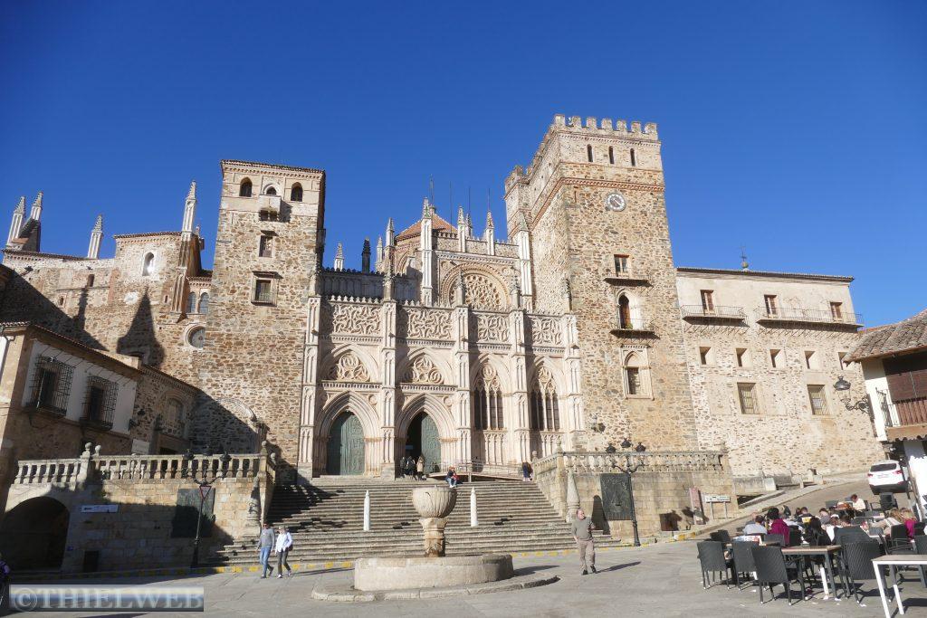 Wieder am Wohnmobil fahren wir weiter in das Pueblo mas bonito, Guadalupe. Die Stadt war eines der wichtigsten Pilgerziele im historischen Königreich Kastilien. Wir laufen an den Ortsrand zum Viaducto de Guadalupe und anschließend zum Kloster Santa María de Guadalupe. Verbunden mit den spanischen Eroberungsfeldzügen in Amerika und Asien ist der Name des Klosters, wo in den Jahren 1486 und 1489 die katholischen Könige Isabella I.von Kastilien und Ferdinand II. von Aragón Christoph Kolumbus empfingen. Auf der Plaza de Santa Maria steht das Taufbecken, in dem die ersten nach Europa verschleppten Indianer zwangsweise getauft wurden. Wir gehen durch die kleinen Gassen von Guadalupe, mit typischer Bergarchitektur. Die weißen Häuser haben Balkone und Arkaden, die von Blumentöpfen geschmückt sind.