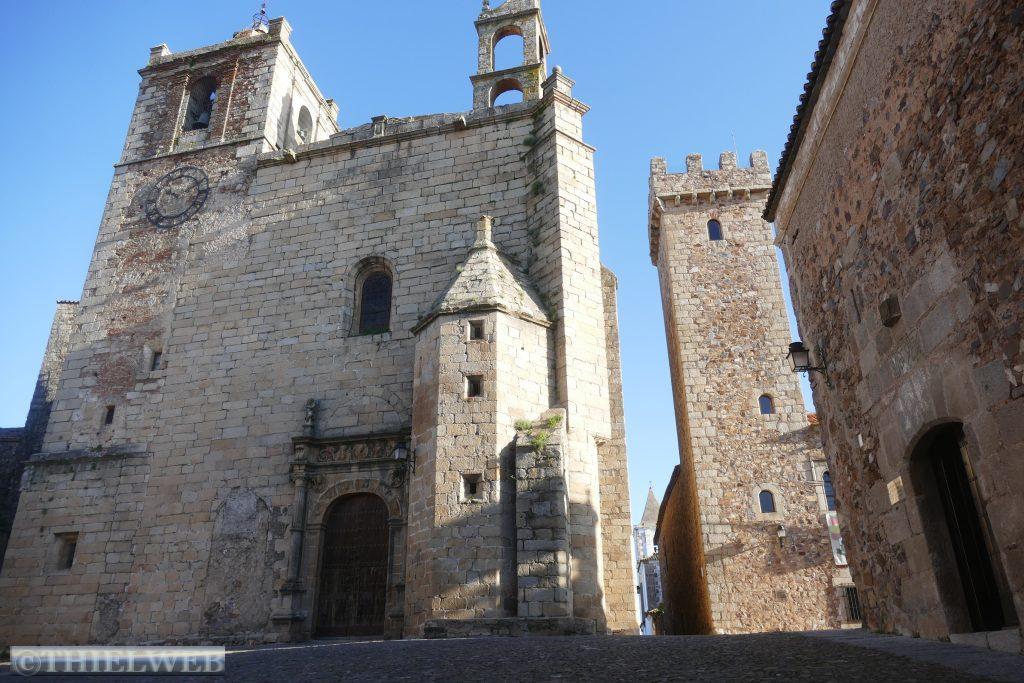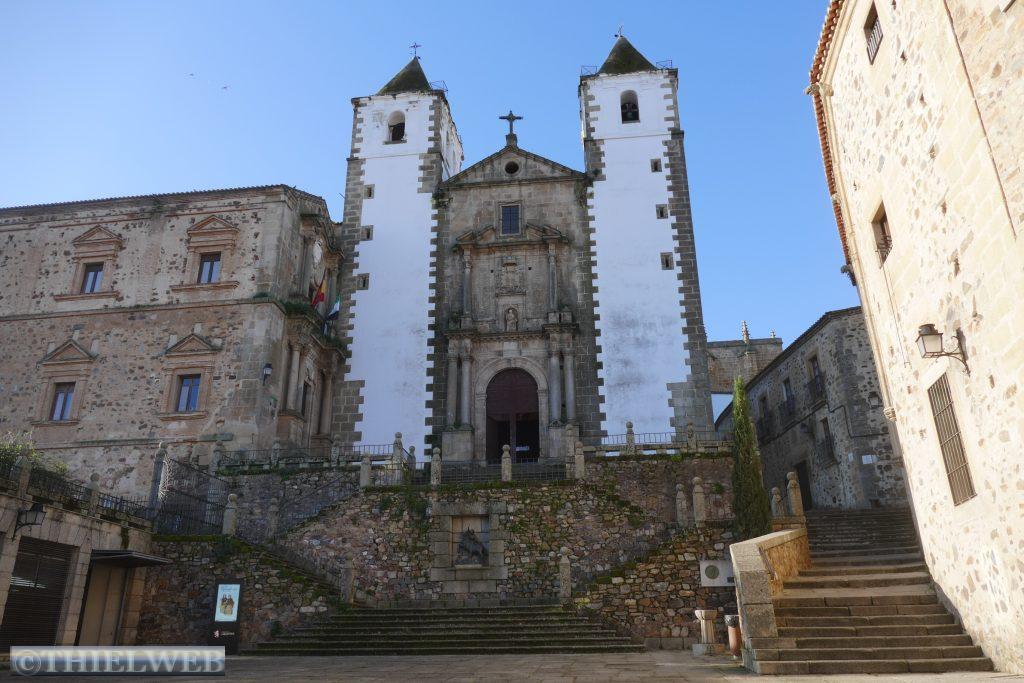 Obwohl wir schon im letzten Jahr Cáceres besuchten, hat uns die Stadt so gut gefallen, dass wir sie am Morgen besichtigen. Von der Plaza Mayor mit dem Torre de Bujaco gehen wir durch die Puerta de la Estrella in den mittelalterlichen Stadtkern. Es sind nur ein paar Schritte zur Plaza de Santa Maria mit der Konkathedrale und vielen schönen Adelspalästen. Dahinter befindet sich die Plaza San Jorge, von der aus eine Treppe zur barocken Iglesia de San Francisco mit den beiden quadratischen weiß getünchten Türmen hinauf führt. Dann kommen wir zum höchsten Punkt der Stadt, der Plaza de San Mateo mit der gleichnamigen Kirche aus dem 15. Jahrhundert. Am Rand der Altstadt gehen wir durch das Judenviertel mit dem maurischen Turm Baluarte de los Pozos, der als Wasserspeicher diente. Es gibt unzählige Adelspaläste und Türme der Stadtmauer sowie Museen, von denen wir zwei besichtigen. Wir lassen uns einfach durch die Gassen treiben. Als wir wieder zum Wohnmobil gehen, ist ein riesiger Markt in der Straße, wo die Ausfahrt vom Stellplatz ist. Wir fragen die Polizei, ob wir vorsichtig ein kurzes Stück durch das Treiben fahren dürfen, was sie uns freundlich erlaubt.