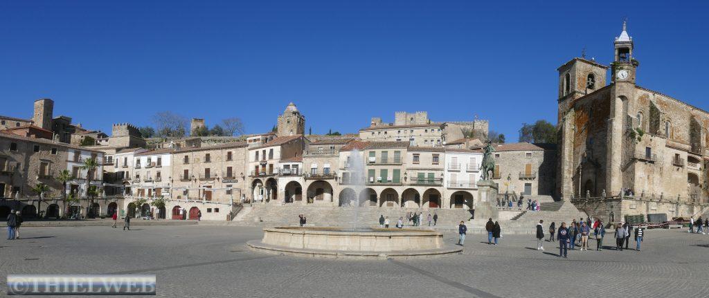 Auch wenn wir Trujillo 2023 besucht haben, so gibt es Städte, die einfach immer wieder sehenswert sind. Von der wunderschönen Plaza Mayor mit ihren vielen Restaurants und Palästen gehen wir zuerst hinauf zum maurischen Alcazaba, den wir dieses Mal ausgiebig besichtigen. Die Burg, die während der Blütezeit des Kalifats von Córdoba errichtet wurde, hat zwei Zisternen und in der Kapelle Virgen de la Vitoria befindet sich die Statue der Schutzpatronin der Stadt. Von den umlaufenden Mauern und den wunderschönen Wachtürmen haben wir einen fantastischen Blick über die Stadt, mit der Iglesia Santa María la Mayor deren gotischer Hochaltar einer der schönsten der Extremadura ist, und der Iglesia de Santiago. Entlang der alten Gassen und der Stadtmauer mit siebzehn Türmen kommen wir wieder zur Plaza Major mit der Iglesia des San Martín und dem Reiterstandbild des Eroberers von Peru, Francisco Pizarro. Gegenüber befindet sich der Palacio Marqués de la Conquista, wegen des schönen Wappens Wappenpalast genannt.
