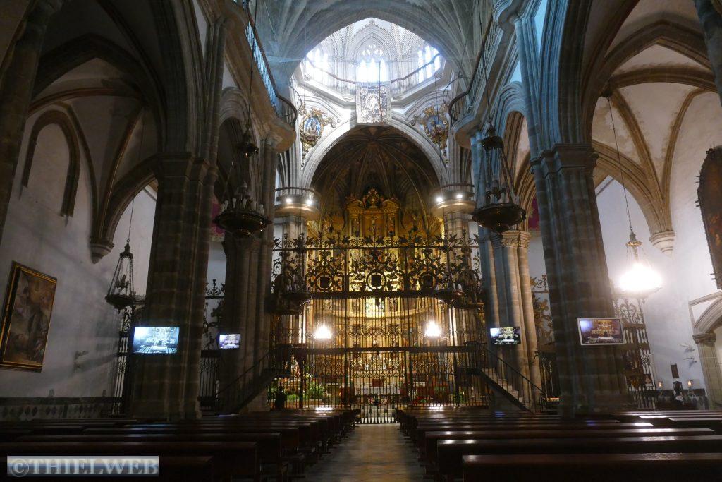 Wieder am Wohnmobil fahren wir weiter in das Pueblo mas bonito, Guadalupe. Die Stadt war eines der wichtigsten Pilgerziele im historischen Königreich Kastilien. Wir laufen an den Ortsrand zum Viaducto de Guadalupe und anschließend zum Kloster Santa María de Guadalupe. Verbunden mit den spanischen Eroberungsfeldzügen in Amerika und Asien ist der Name des Klosters, wo in den Jahren 1486 und 1489 die katholischen Könige Isabella I.von Kastilien und Ferdinand II. von Aragón Christoph Kolumbus empfingen. Auf der Plaza de Santa Maria steht das Taufbecken, in dem die ersten nach Europa verschleppten Indianer zwangsweise getauft wurden. Wir gehen durch die kleinen Gassen von Guadalupe, mit typischer Bergarchitektur. Die weißen Häuser haben Balkone und Arkaden, die von Blumentöpfen geschmückt sind.