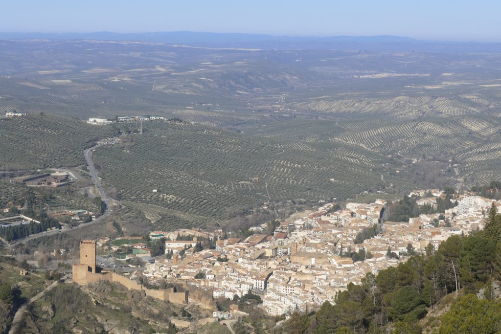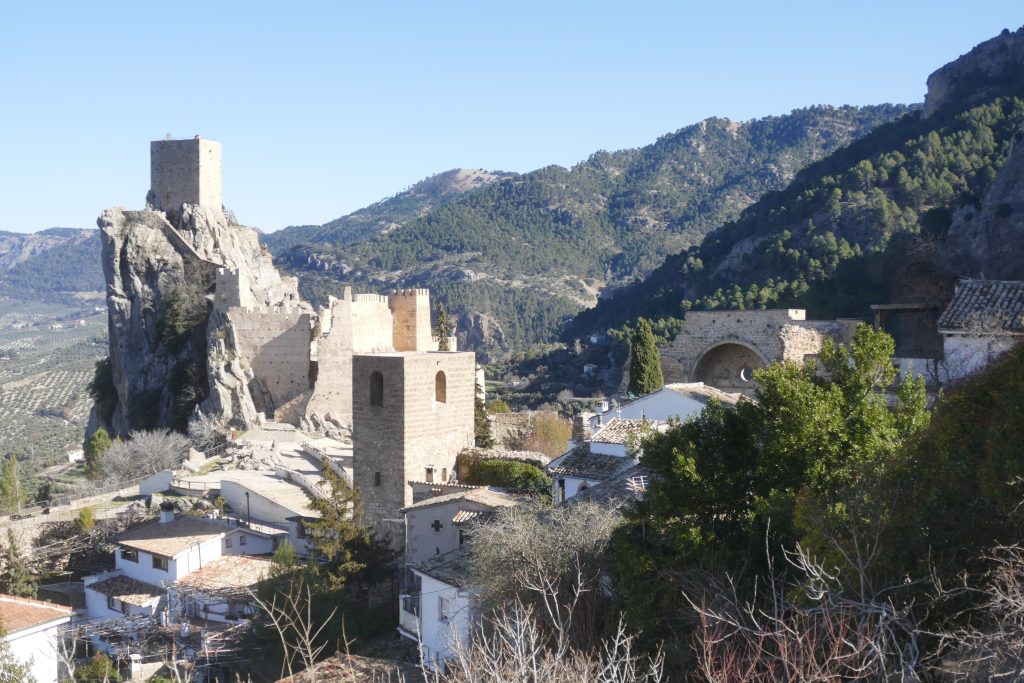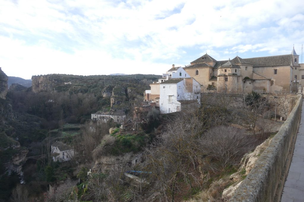 Immer noch ist es sehr kalt. Wir wollen heute die Wanderung entlang des Cerezuelo Flusses unternehmen. Um nicht an der Hauptstraße zur Kirche Santa María zu gehen, nehmen wir eine Nebenstraße und werden mit einer Steigung von geschätzt 20% überrascht. Man denkt, dass man mit der Nase den Asphalt berührt. In der Information ist niemand anzutreffen, deshalb verzichten wir darauf, uns das unterirdische Gewölbe der Kirche mit dem Fluss anzusehen. Wir kommen auf den Wanderweg direkt am Cerezuelo-Fluss und auch schon zu den ersten Wasserfällen. Immer ansteigend führt der schmale Pfad durch das Tal mal links, mal rechts den Fluss entlang, den wir über kleine Holzbrücken queren. Wir stoßen auf einen ansteigenden Weg und verlassen den Río Cerezuelo. Der Weg ist an einer Stelle ausgesetzt, die wir überwinden müssen. Dann stoßen wir auf eine kleine Asphaltstraße, die uns wieder abwärts führt. Immer wieder ist ein Mirador an der Straße, von dem wir einen herrlichen Blick auf Cazorla und das Castillo de Salvatierra aus dem 14. Jh., mit dem fünfeckigen Bergfried haben. Dann ist hoch oben die Ermita de la Virgen de la Cabeza, zu der wir jedoch nicht hinaufgehen. Nach einer Weile erreichen wir La Iruela mit dem Castillo de La Iruela und der Kirchenruinen Santa María. Nun geht es immer weiter bergab bis zum Stellplatz. Hier könnte man noch unendlich viel wandern, doch ist der Stellplatz recht schattig. In der Hoffnung, in eine etwas wärmere Gegend zu kommen, fahren wir ca. 40 km weiter in die Renaissance-Stadt Úbeda. Die Region zählt zu den größten Anbauregionen für Olivenöl weltweit. So ist es nicht verwunderlich, dass wir auf der Fahrt an bis zum Horizont reichenden Olivenhainen vorbeifahren.