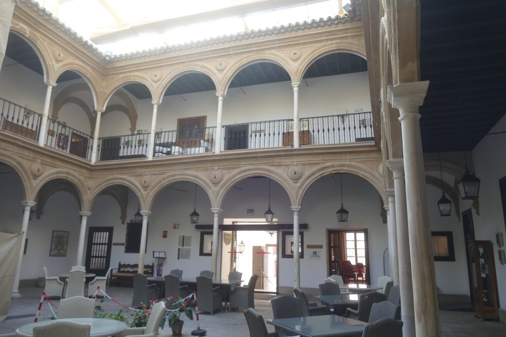 Am Morgen sehen wir uns die Altstadt von Úbeda an. Es weht ein bitterkalter Wind. An der Plaza de Andalucia steht der Torre del Reloy von dem aus wir zur Plaza Vázquez de Molina gehen. Hier steht der Palacio del Deán Ortega, der heute ein Luxushotel ist. In seinem Innenhof befinden sich Arkaden mit eleganten Säulen über zwei Stockwerke. An der Ostseite des Platzes ist die Sacra Capilla del Salvador. Wir nehmen die Gasse Calle Baja del Salvador vorbei an der Kapelle zu einem schönen Aussichtspunkt mit weitem Blick auf die Sierra de Cazorla. Im Palacio de las Cadenas befindet sich das Rathaus.