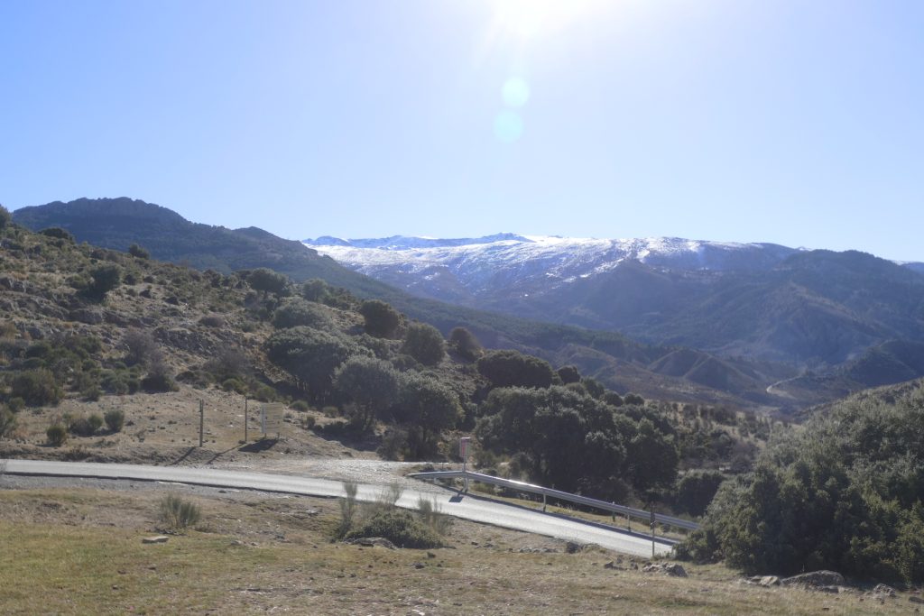 Es gibt Tage, die man aus dem Kalender streichen sollte. Wir haben Bilderbuchwetter und fahren heute nach Monachil, um einen wunderschönen Wanderweg zu gehen. Vorher wollen wir tanken, doch als wir die Tankstelle anfahren, ist diese nur für die Genossenschaft. Wieder auf der Autobahn fahren wir an Granada vorbei und biegen in das kleine Dorf Monachil ab. Hier ist offenbar gerade eine Veranstaltung, keine Chance, auch nur irgendwo einen Parkplatz zu finden. Auch hinter dem Ort ist der Parkplatz voll und ein Herr zeigt uns, wir sollen weiterfahren. In der Hoffnung, nun einen Platz oder eine Wendemöglichkeit zu finden, steigt die schmale Straße immer weiter in Serpentinen bergan. Dann kommt endlich nach ca. 10 km ein Parkplatz an der Puerto El Purche. Wir sind mittlerweile auf 1.500 m Höhe und haben hier eine tolle Aussicht auf die Sierra Nevada. Leider dürfen wir hier nicht übernachten, sodass eine Wanderung um diese Zeit keinen Sinn mehr macht. Also fahren wir weiter im weiten Bogen am Embalse de Canales, einem Stausee vorbei, bis Pinos Genil. Doch auch hier ist alles so eng, dass wir es vorziehen noch bis Los Pinillos weiterzufahren. Ein nichtssagender Ort, doch mit viel Platz. Hier gibt es einen kleinen Wanderweg am Fluss Genil entlang, der von den Spaniern gut frequentiert ist, und den wir als Ausgleich nutzen. Das alles wäre ja nicht so schlimm, doch ab morgen kommt eine Schlechtwetterfront.