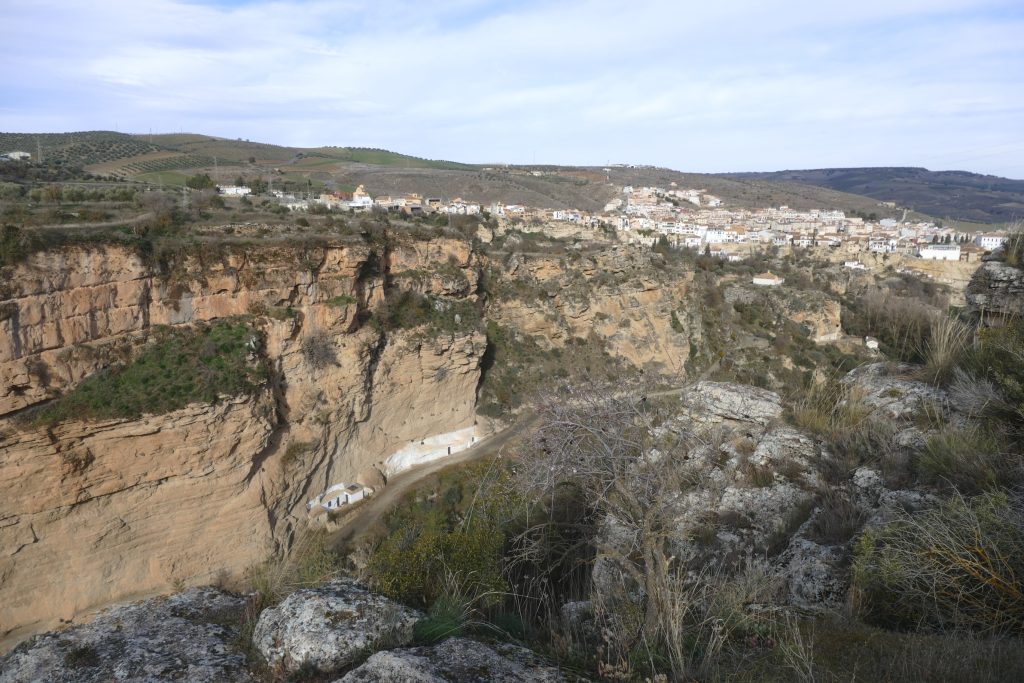 Alhama de Granada, auf einem riesigen, felsigen Gebirgsausläufer gelegen und umgeben von der tiefen Schlucht des Río Alhama, liegt am Nordhang der Sierra Tejeda, einem beeindruckenden Massivs aus rötlich-braunem Gestein. In der Altstadt mit ihren steilen Gassen gibt es noch ein paar Baudenkmäler. Doch das Beste ist der kleine Wanderweg Los Angeles, auf dem wir spektakuläre Aussichten von oben in die Schlucht haben. Der Mirador de Alhama direkt neben der Carmen-Kirche bietet uns den ersten Panoramablick auf den Naturpark Tajos und das Aqueduct. Die Schlucht besteht aus einer Reihe von Schluchten, die durch Erosion, Steinschläge und Erdbeben entstanden sind. Über eine steile Treppe kommen wir zum Fluss hinunter und an die Höhlen Las Mazmorras, die als Speicher und Kerker genutzt wurden. Über eine Brücke queren wir den Fluss und kommen zur Cueva del Pringoso mit tollem Blick auf die Stadt. Dann steigen wir auf der gegenüberliegenden Seite wieder hinauf zu einer kleinen Straße bis zu einem Mirador und wandern bis Pantaneta und dem Stausee Bermejales. Nun führt der Weg im Tal des Flusses zurück und wir kommen an der Eremitage von Los Angeles vorbei. Am Fluss Alhama gab es einmal 22 Mühlen wie die Molina de la Purísima, die den Weizen der Umgebung verarbeiteten, sowie aus dem Felsen gehauene Waschplätze. Wir kommen zurück zur Brücke, die wir bereits überquert haben und nehmen den gepflasterten Weg bis zur Cuesta de los Molinos, wo wir die Stadt wieder erreichen.