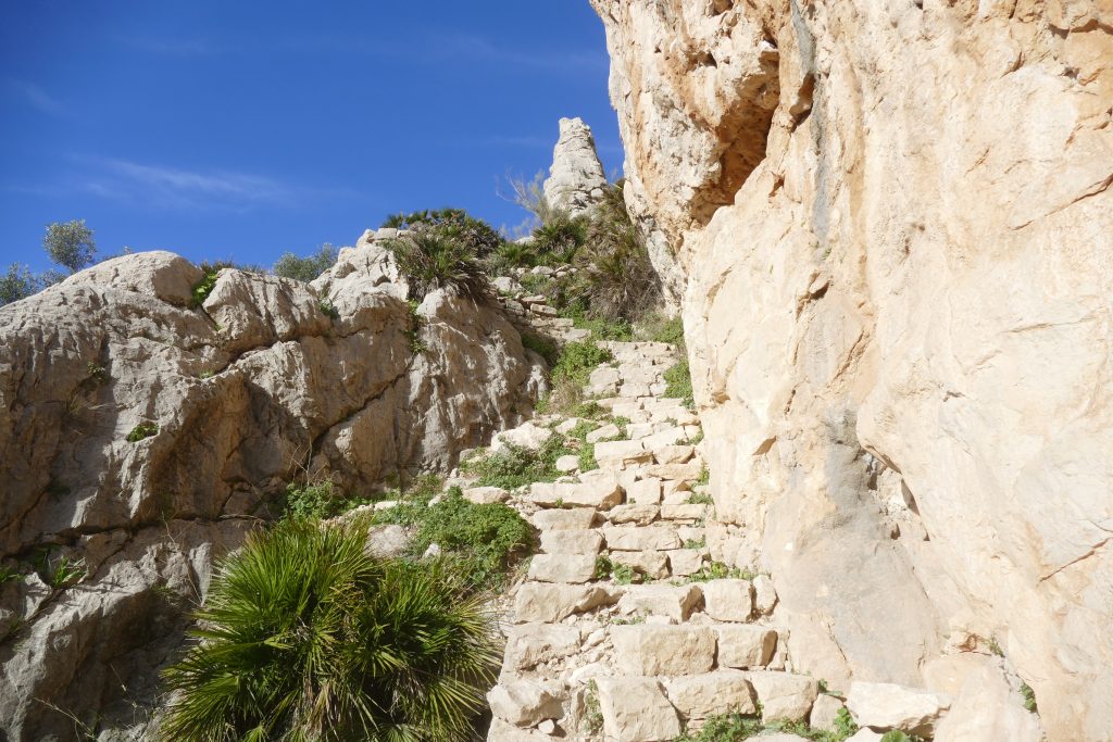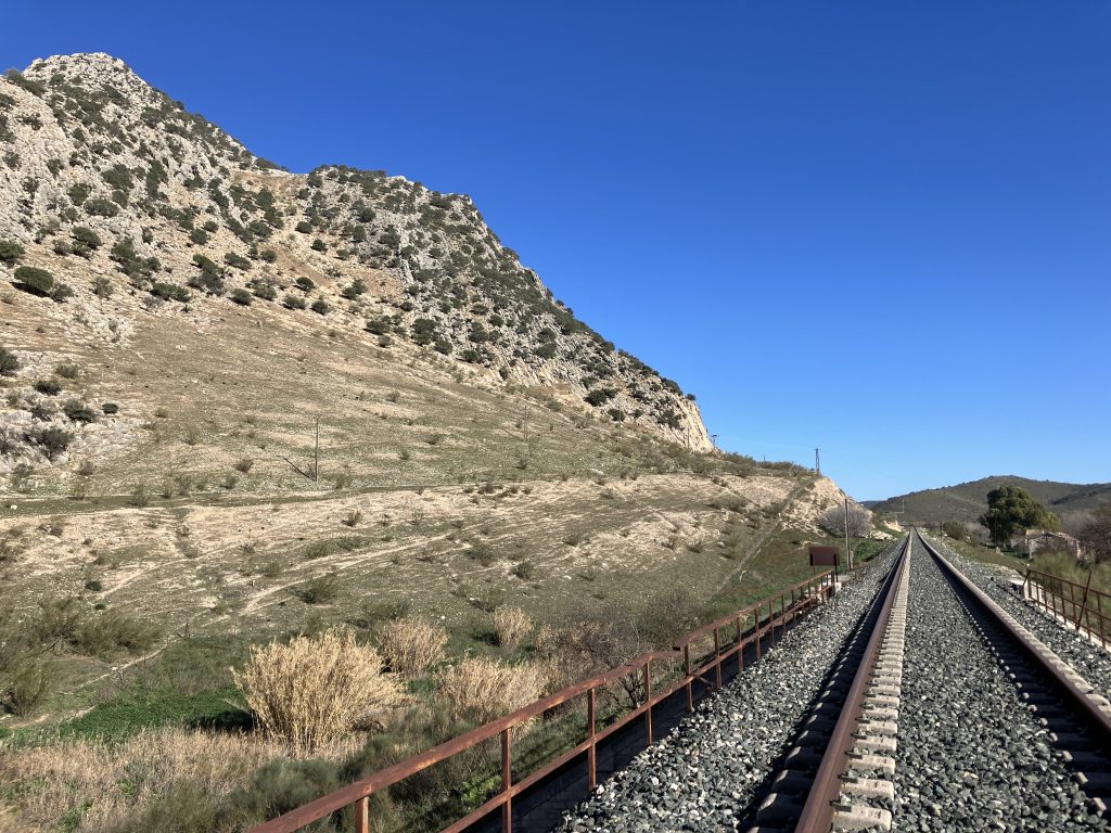 Hauptattraktionen von El Chorro ist die Gaitanes-Schlucht, die vom Río Guadalhorce über eine Länge von 5 km in den Stein geschliffen wurde. Sie befindet sich im Naturpark von Ardales. Die senkrechten Wände der Schlucht ragen bis zu 400 m hoch und sind ein Kletterparadies. Der Caminito del Rey klebt an der einen Wand der Schlucht, auf der anderen verläuft eine spektakuläre Eisenbahntrasse der Linie Málaga-Córdoba und passiert mehrere Tunnel und Brücken. Ursprünglich diente der Caminito del Rey dem Transport von Baumaterial und Werkzeug zum Bau des Staudamms und des Pumpspeicherwerkes. Er erlangte jedoch so viel Berühmtheit, dass er restauriert und für Touristen geöffnet wurde. Im Naturpark Desfiladero de los Gaitanes bildet die Escalera Arabe eine steinerne Treppe mit tollem Ausblick auf den Stausee. Es ist eine klassische Route und die beliebteste Wanderung im Naturpark. Der Ursprung der Treppe ist unbekannt, doch es wird angenommen, dass sie im 15. Jahrhundert von Arabern als Teil ihrer Handelsrouten gebaut wurde. Am Anfang nehmen wir eine Schotterstraße, die aufwärts führt bis zum Fuß der senkrecht aufragende Felswand. Ein Hinweisschild zeigt uns den Weg, der direkt am Abhang entlangführt. Dann führen uralte steinerne Stufen am Fels hinauf. Unser Blick schweift ins Tal und auf den Stausee. Nach ca. 500 m ist leider damit Schluss, doch führt der Weg weiter hinauf auf ca.755 Höhenmeter zum Gipfel El Huma. Für den Abstieg nehmen wir ein Stück des GR 340, den Camino Geológico Malacitano eine übrigens auch sehr interessante Wanderung. Im Anschluss fahren wir durch eine völlig andere Landschaft Richtung Norden nach Osuna mitten in Andalusien zwischen der flachen und sandigen Campiña im Norden und den mit Oliven bestandenen Hügeln im Süden.