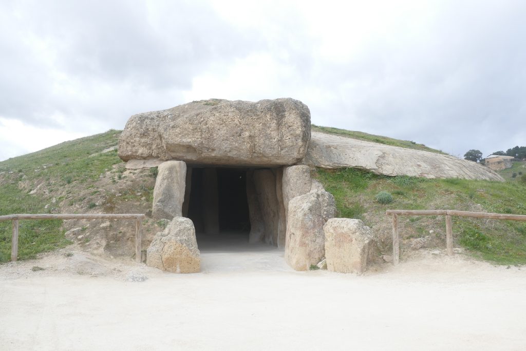 Unser Parkplatz ist direkt am Fußballstadion, in dem gestern Abend noch ein Spiel, mit Trommeln und Gesang begleitet, stattfand. Am Morgen sehen wir uns die Altstadt von Antequera an. Von der Stierkampfarena kommen wir zur Puerta de Estapa und sehen schon die Alcazaba über der Stadt. Am Platz Coso Viejo befindet sich das Kloster Santa Catalina de Siena mit der Statur der Ephebe von Antequera davor. Wir gehen in Richtung Alcazaba durch den Arco de los Gigantes, nachdem wir vom Mirador einen tollen Panoramablick auf die Stadt mit ihren vielen Kirchen und Klöstern und den Peña de los Enamorados genießen. Die Stiftskirche Santa María la Mayor zählt zu den ältesten Kirchen der Stadt. Wir umrunden die Alcazaba und gehen dann zur Kirche Santa María de Jesús, die der Jungfrau von Socorro gewidmet ist. Ihre Kapelle ist mit wunderschönen Stuckarbeiten verziert. Wieder in Richtung Altstadt kommen wir durch das arabische Viertel und zur Stadtmauer an der Plaza del Carmen vorbei. Nächstes Ziel ist die Kirche El Carmen und das Kloster Belem mit der gegenüberliegenden Pfarrkirche Santiago. Etwas außerhalb befinden sich die Dolmen de Viera und Menga aus der frühen Kupferzeit um etwa 2.500 v. Chr. Besonders beeindrucken ist der Dolmen de Menga, mit einer großen ovalen Kammer, die eine geschlossene Galerie bildet und zum Eingang hin etwas enger wird. Der hinterste Deckstein mit 6 Meter Länge und 7 Meter Breite hat ein ungefähres Gewicht von 180 Tonnen. Im Königlichen Kloster San Zoilo bewundern wir den schönen Kreuzgang, bevor wir wieder zum Stellplatz zurückkehren und auf einer abenteuerlichen schmalen Straße nach El Chorro neben dem Stauwerk des Stausees El Conde de Guadalhorce fahren.