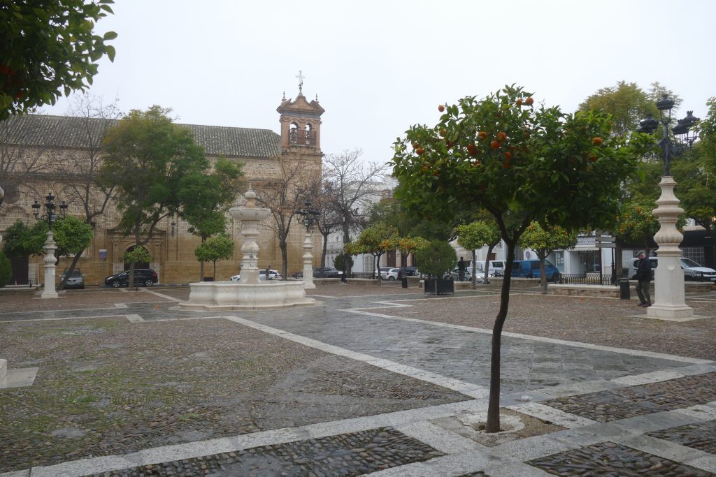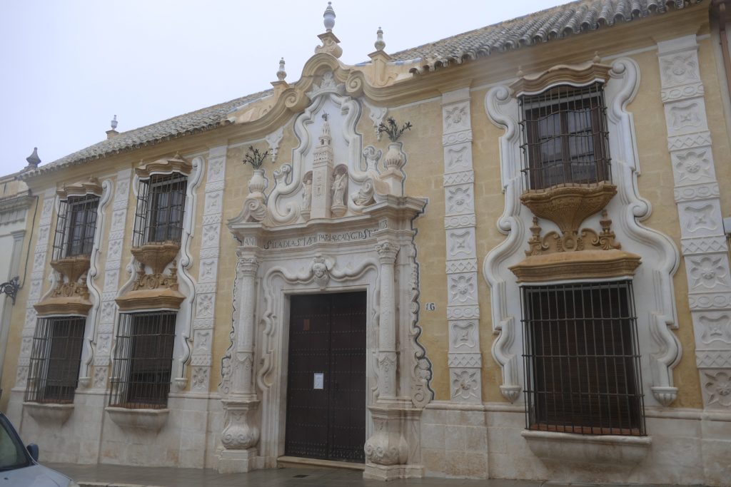 Heute ist es bedeckt, mit etwas Sprühregen und ordentlich Wind. Den Mittelpunkt der Altstadt von Osuna bildet die Plaza Mayor mit dem Rathaus und dem Convento de la Concepción. Wir gehen in die Calle San Pedro, an der die schönsten Paläste von Osuna liegen. Der Palast mit der Hausnummer 16 aus dem Jahre 1773 hat über dem barocken Portal die Giralda der Kathedrale von Sevilla als Miniaturformat. In der Calle Christo befinden sich weiße, mit Balkonen geschmückte Bürgerhäuser. Hoch über der Altstadt thront auf einem Hügel die Kirche Colegiata de Nuestra Señora de la Asunción. Hier befindet sich auch die Universität mit einem schönem Innenhof. Wir gehen noch zum Arco de la Pastora und dann durch die Hauptstraße Calle Carrera zurück zum Stellplatz.