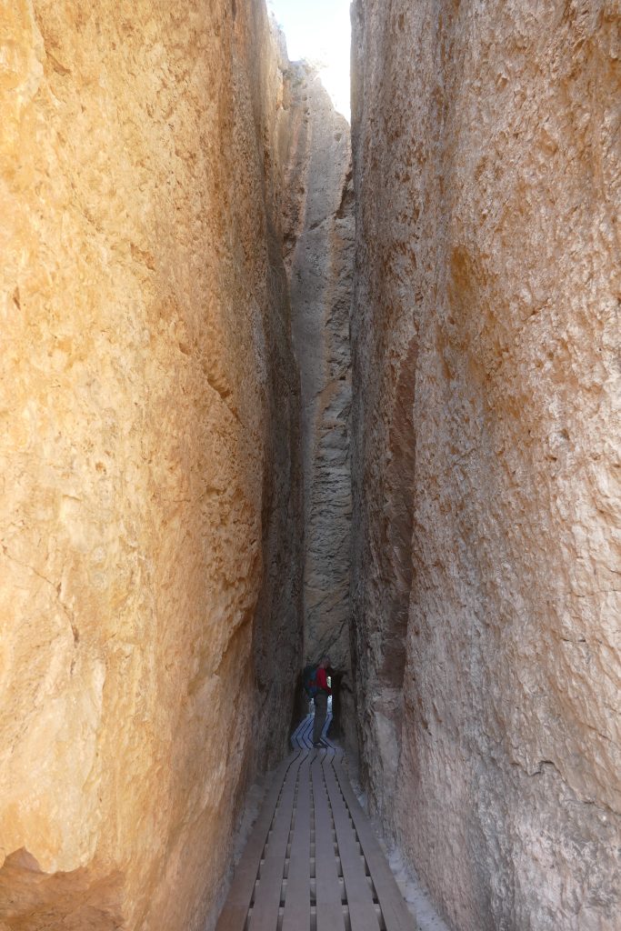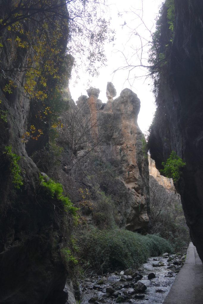 Heute nehmen wir den zweiten Anlauf für unsere Wanderung Los Cahorros de Monachil, die die enge Schlucht des Monachil River durchquert, mit den gigantischen Bergen des Sierra Nevada Nationalparks im Hintergrund. Wir folgen dem Monachil-Fluss bis zum Eingang der Schlucht. Hier wechselt der Weg über 4 Hängebrücken, die letzte ist 65 m lang, die Flussseiten. Nach oben haben wir atemberaubende Ausblicke auf eine einfach beeindruckende Naturkulisse der kolossalen Berge. In der Schlucht gibt es Bereiche, die so eng sind, dass wir uns eng an die Felsen lehnen müssen. An den nahe vertikalen Wänden des Canyons gibt es manchmal eingelassene Metallklammern, an denen wir uns festhalten können. Je weiter wir in die Schlucht kommen, desto enger wird sie, bis zu einem Punkt, an dem die gesamte Schlucht vom Flussbett des Monachil eingenommen wird. An der engsten Stellen ist ein Vorankommen nur möglich, indem man „auf allen Vieren“ geht. Ein Höhepunkt ist die Querung des Taubentunnels (Tunel de las Palomas), ein natürlicher Durchgang unter kolossalen Felsblöcken, die von den Wänden des Canyons fielen und im Canyon hängen blieben, ohne das Bett des Tals vollständig zu blockieren. Dann beginnen sich die Wände des Canyons zu weiten und wir befinden uns in einem wunderschönen Tal umgeben von den rot schimmernden Bergen. Wir folgen weiter der Schlucht und kommen auf die andere Seite zum Gipfel der Schlucht (Cahorros de Cima), von dem wir einen atemberaubenden Blick zurück in die Schlucht und auf Granada haben. Nach dieser schönen Wanderung fahren wir weiter in südwestliche Richtung, entlang von Oliven- und Obstplantagen nach Alhama de Granada.
