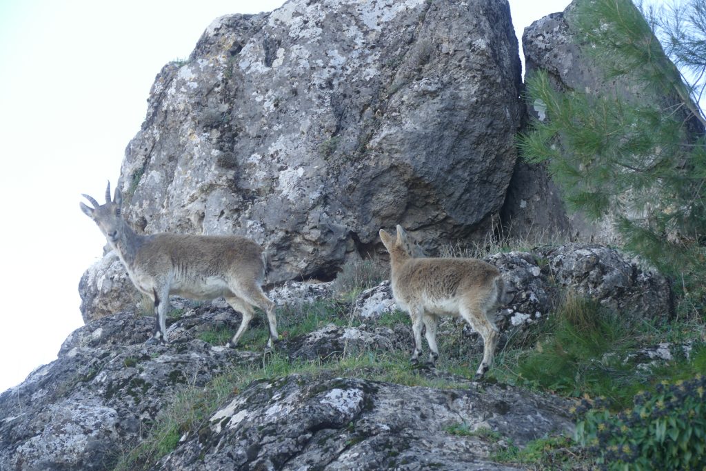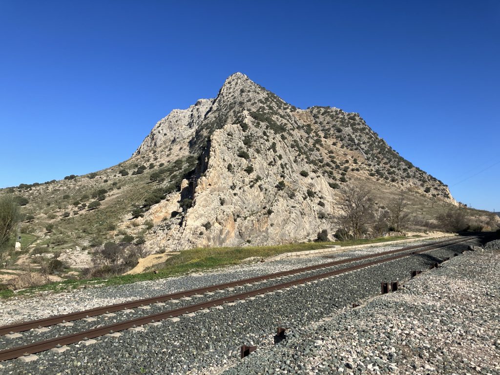 Der Peña de los Enamorados wirkt aus der südwestlichen Perspektive wie der Kopf eines Indianerhäuptlings mit nach oben liegenden Federn. Es gibt eine Wanderung auf den Berg, die wir heute unternehmen wollen. Vom Parkplatz gehen wir auf den Bahngleisen und über eine Brücke. Dann in Richtung Fluss Guadalhorce und aufwärts am Hang. Hier müssen wir einen Zaun überwinden und später ein eisernes Tor. Der Pfad ist eher ein Tierpfad und nur ab und an sehen wir Steinmännchen. An der Steilwand, die wir schon bald erreichen, sind mehrere Höhlen zu erkennen. Nun können wir nur noch dem Navi folgen, müssen über Steine hinaufklettern und immer wieder den Weg suchen. Wir sind schon fast zur Hälfte um den Peña de los Enamorados herumgelaufen und am Kinn angekommen. Eigentlich wollten wir nun nach oben zum Gipfel gelangen. Doch hier wird uns die Kletterei zu viel. Unten sehen wir die Bahngleise und steigen hinab. Eine große Herde der Iberischen Ziegen läuft den Hang hinauf. Vom Parkplatz fahren wir danach weiter nach Antequera, und haben Glück, dass gerade ein Platz frei wird.