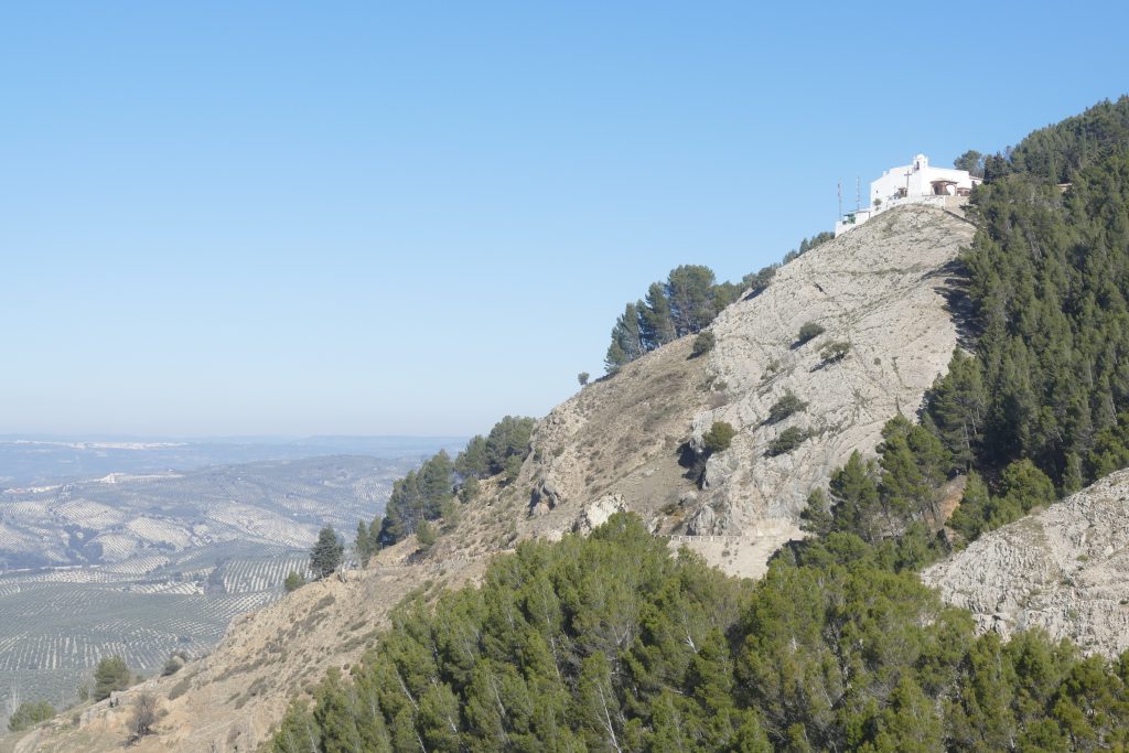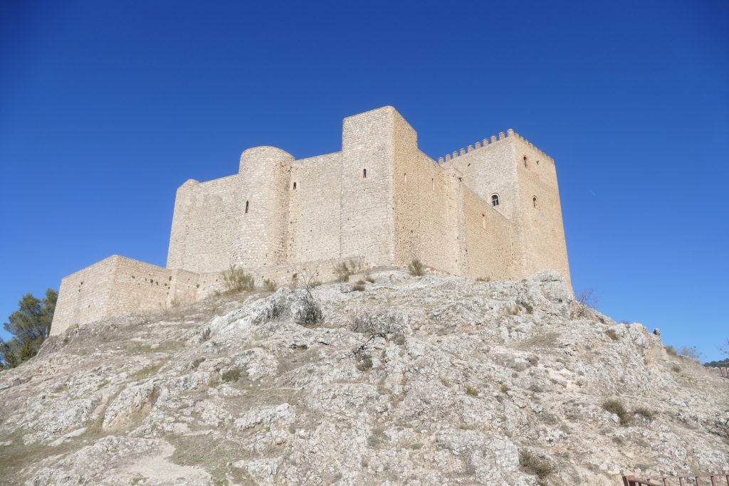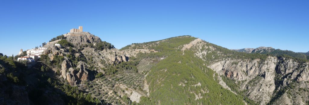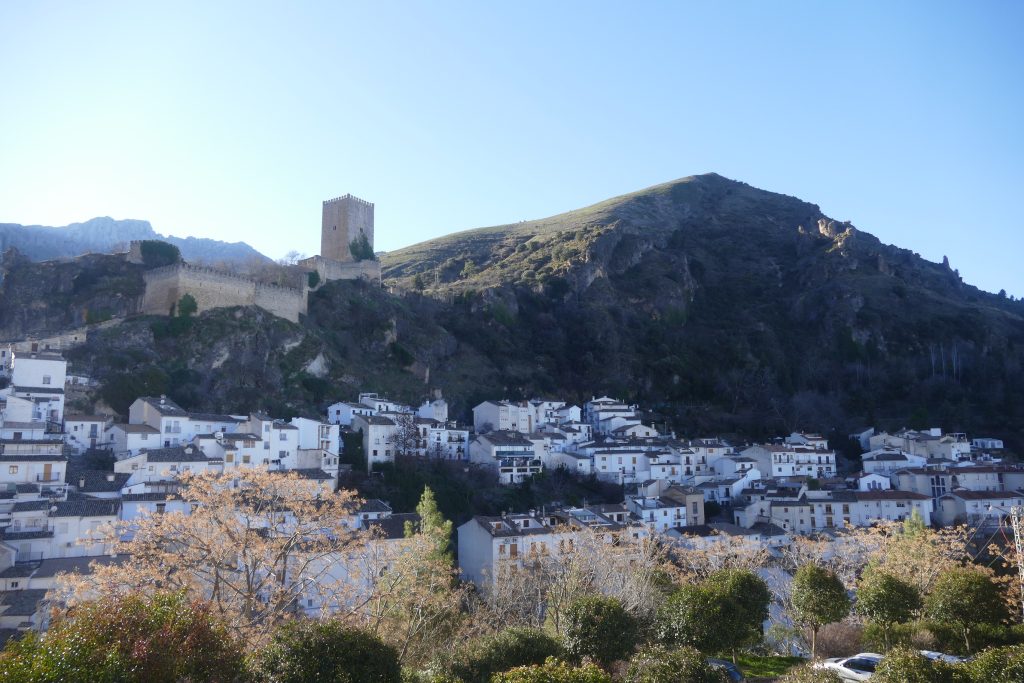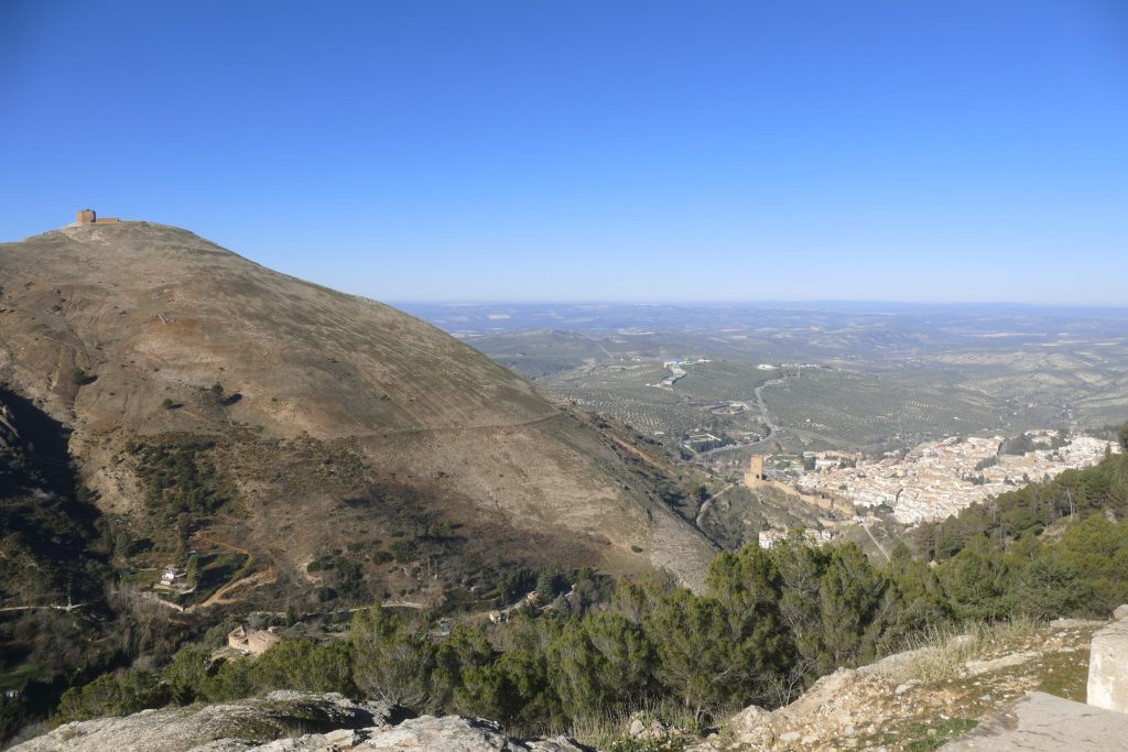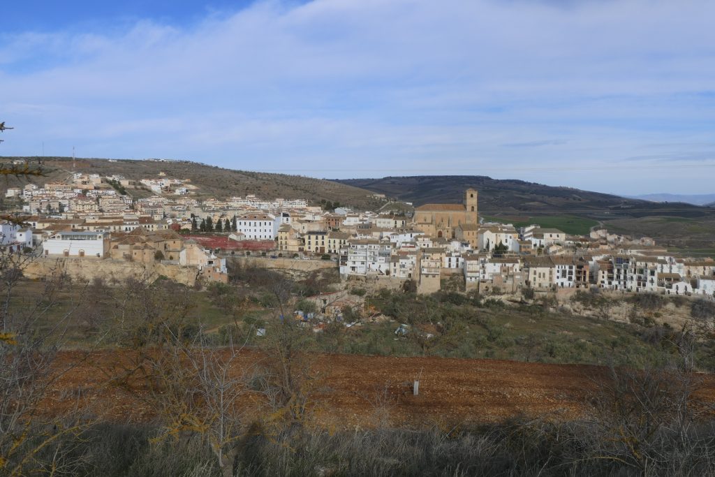 Immer noch ist es sehr kalt. Wir wollen heute die Wanderung entlang des Cerezuelo Flusses unternehmen. Um nicht an der Hauptstraße zur Kirche Santa María zu gehen, nehmen wir eine Nebenstraße und werden mit einer Steigung von geschätzt 20% überrascht. Man denkt, dass man mit der Nase den Asphalt berührt. In der Information ist niemand anzutreffen, deshalb verzichten wir darauf, uns das unterirdische Gewölbe der Kirche mit dem Fluss anzusehen. Wir kommen auf den Wanderweg direkt am Cerezuelo-Fluss und auch schon zu den ersten Wasserfällen. Immer ansteigend führt der schmale Pfad durch das Tal mal links, mal rechts den Fluss entlang, den wir über kleine Holzbrücken queren. Wir stoßen auf einen ansteigenden Weg und verlassen den Río Cerezuelo. Der Weg ist an einer Stelle ausgesetzt, die wir überwinden müssen. Dann stoßen wir auf eine kleine Asphaltstraße, die uns wieder abwärts führt. Immer wieder ist ein Mirador an der Straße, von dem wir einen herrlichen Blick auf Cazorla und das Castillo de Salvatierra aus dem 14. Jh., mit dem fünfeckigen Bergfried haben. Dann ist hoch oben die Ermita de la Virgen de la Cabeza, zu der wir jedoch nicht hinaufgehen. Nach einer Weile erreichen wir La Iruela mit dem Castillo de La Iruela und der Kirchenruinen Santa María. Nun geht es immer weiter bergab bis zum Stellplatz. Hier könnte man noch unendlich viel wandern, doch ist der Stellplatz recht schattig. In der Hoffnung, in eine etwas wärmere Gegend zu kommen, fahren wir ca. 40 km weiter in die Renaissance-Stadt Úbeda. Die Region zählt zu den größten Anbauregionen für Olivenöl weltweit. So ist es nicht verwunderlich, dass wir auf der Fahrt an bis zum Horizont reichenden Olivenhainen vorbeifahren.