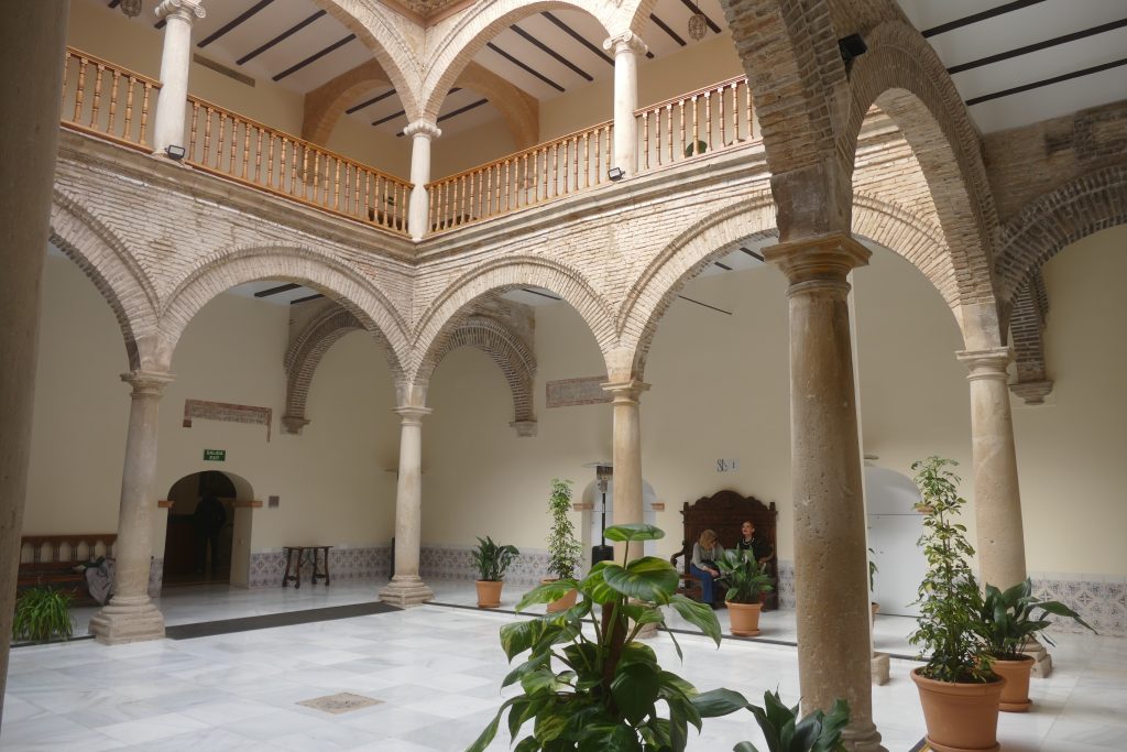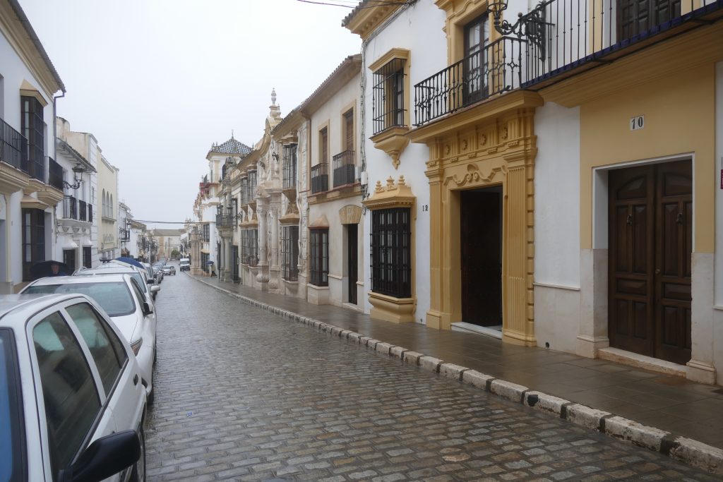 Heute ist es bedeckt, mit etwas Sprühregen und ordentlich Wind. Den Mittelpunkt der Altstadt von Osuna bildet die Plaza Mayor mit dem Rathaus und dem Convento de la Concepción. Wir gehen in die Calle San Pedro, an der die schönsten Paläste von Osuna liegen. Der Palast mit der Hausnummer 16 aus dem Jahre 1773 hat über dem barocken Portal die Giralda der Kathedrale von Sevilla als Miniaturformat. In der Calle Christo befinden sich weiße, mit Balkonen geschmückte Bürgerhäuser. Hoch über der Altstadt thront auf einem Hügel die Kirche Colegiata de Nuestra Señora de la Asunción. Hier befindet sich auch die Universität mit einem schönem Innenhof. Wir gehen noch zum Arco de la Pastora und dann durch die Hauptstraße Calle Carrera zurück zum Stellplatz.