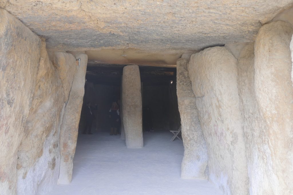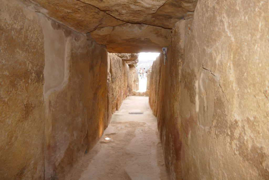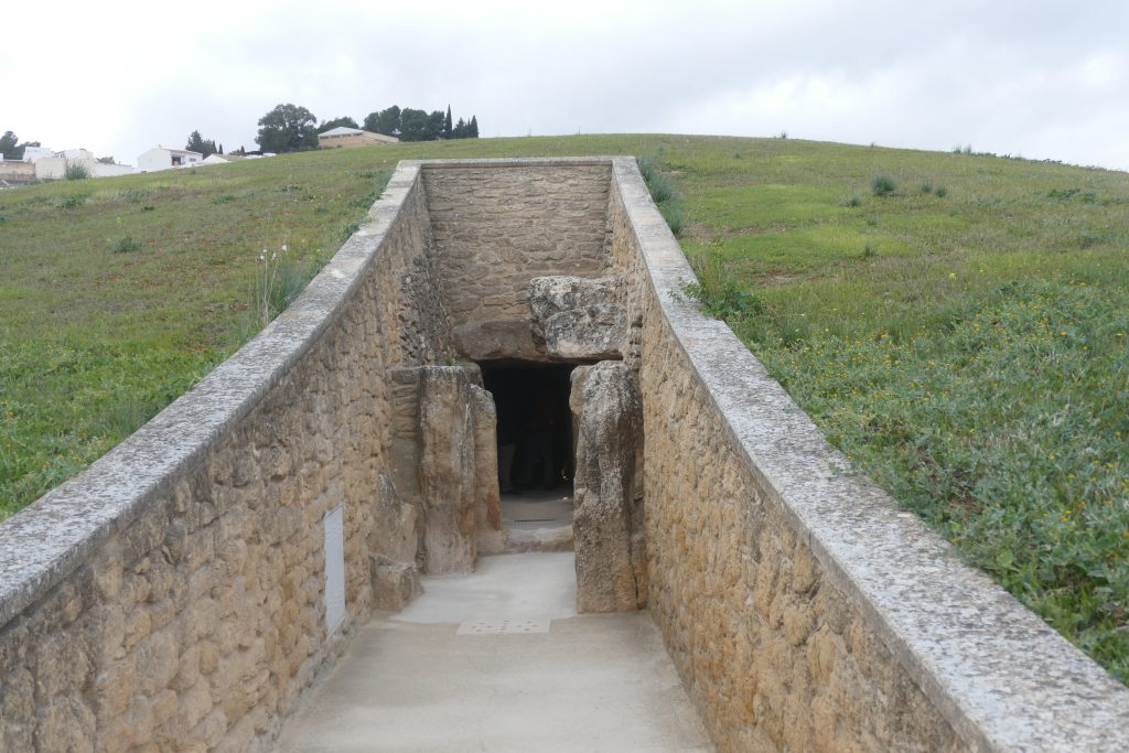 Unser Parkplatz ist direkt am Fußballstadion, in dem gestern Abend noch ein Spiel, mit Trommeln und Gesang begleitet, stattfand. Am Morgen sehen wir uns die Altstadt von Antequera an. Von der Stierkampfarena kommen wir zur Puerta de Estapa und sehen schon die Alcazaba über der Stadt. Am Platz Coso Viejo befindet sich das Kloster Santa Catalina de Siena mit der Statur der Ephebe von Antequera davor. Wir gehen in Richtung Alcazaba durch den Arco de los Gigantes, nachdem wir vom Mirador einen tollen Panoramablick auf die Stadt mit ihren vielen Kirchen und Klöstern und den Peña de los Enamorados genießen. Die Stiftskirche Santa María la Mayor zählt zu den ältesten Kirchen der Stadt. Wir umrunden die Alcazaba und gehen dann zur Kirche Santa María de Jesús, die der Jungfrau von Socorro gewidmet ist. Ihre Kapelle ist mit wunderschönen Stuckarbeiten verziert. Wieder in Richtung Altstadt kommen wir durch das arabische Viertel und zur Stadtmauer an der Plaza del Carmen vorbei. Nächstes Ziel ist die Kirche El Carmen und das Kloster Belem mit der gegenüberliegenden Pfarrkirche Santiago. Etwas außerhalb befinden sich die Dolmen de Viera und Menga aus der frühen Kupferzeit um etwa 2.500 v. Chr. Besonders beeindrucken ist der Dolmen de Menga, mit einer großen ovalen Kammer, die eine geschlossene Galerie bildet und zum Eingang hin etwas enger wird. Der hinterste Deckstein mit 6 Meter Länge und 7 Meter Breite hat ein ungefähres Gewicht von 180 Tonnen. Im Königlichen Kloster San Zoilo bewundern wir den schönen Kreuzgang, bevor wir wieder zum Stellplatz zurückkehren und auf einer abenteuerlichen schmalen Straße nach El Chorro neben dem Stauwerk des Stausees El Conde de Guadalhorce fahren.