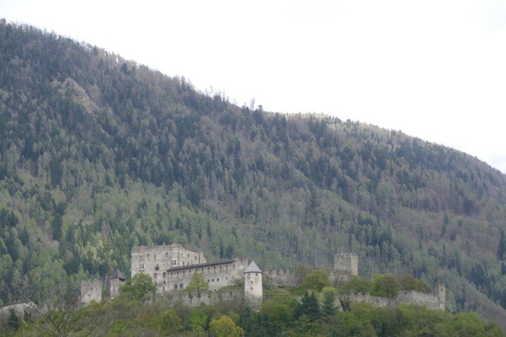 Schon um 5 Uhr stehen wir heute auf, um über den Brenner nach Italien zu fahren. Wie erwartet ist es auf der Strecke durch Österreich und den Brenner zäh fließend. Aber was macht das schon, es regnet sowieso. Als wir in Italien ankommen, strahlt die Sonne. Erster Anlaufpunkt ist Mezzolombardo, wo wir zum Skywalk wollen. Eine sehr steile und enge Straße geht es hinauf – wir haben den falschen Stellplatz ins Navi eingegeben. Am Friedhof angekommen fällt uns ein, dass es bei der Abfahrt eine Höhenbeschränkung auf 2 m gibt. Achim rennt hinunter – eng und überhängende Balkone. Könnte zu schaffen sein. Also wieder hinunter zum Parkplatz am Sportgeschäft. Zu kurze Parkplätze. Nach einer Pause beschließen wir nach Pergine Valsugana (Fersen im Suganertal) einer lebhaften Stadt am Tor zum berühmten Fersentals zu fahren. Am Nachmittag sehen wir uns den kleinen Ort an, über dem die Schlossanlage Castel Pergine thront.