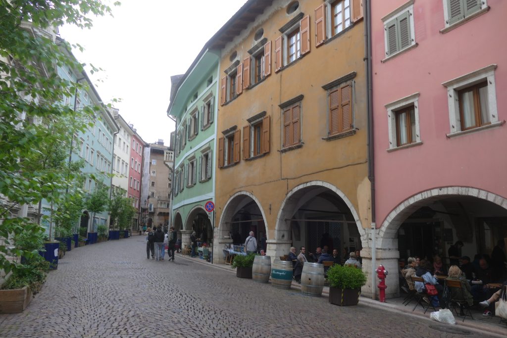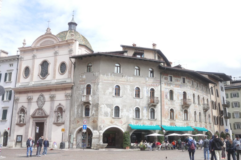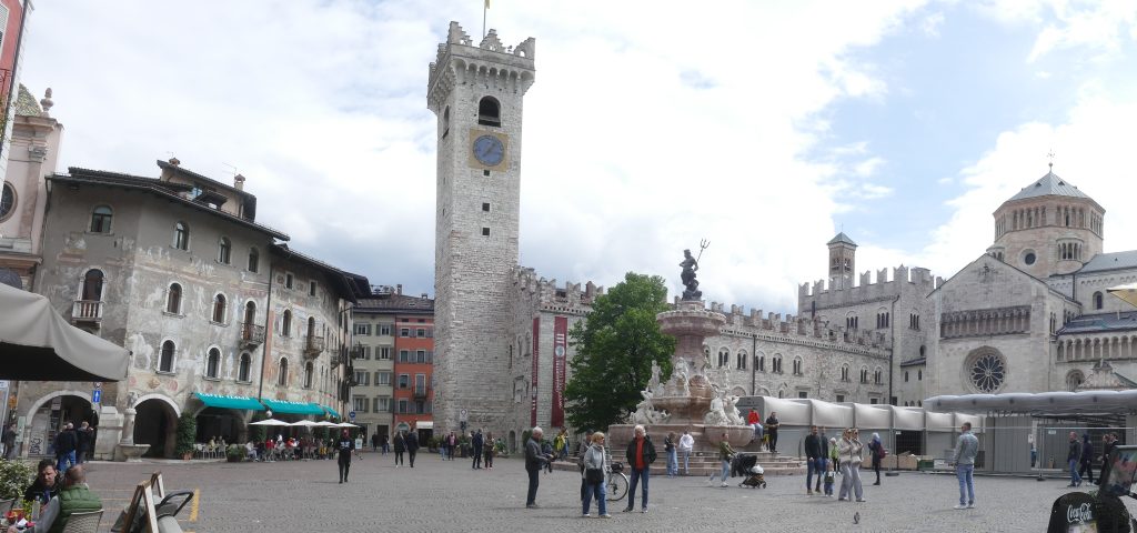 Heute entscheiden wir uns, mit dem Bus nach Trient zu fahren. Doch zuerst schlendern wir durch den riesigen Markt in Pergine Valsungana. Gerade mal 17 Minuten dauert die Busfahrt nach Trient. Als wir ankommen, regnet es leicht. So gehen wir nach dem Besuch der Touristeninformation zuerst zum Castello del Buonconsiglio, der ehemaligen Residenz des Fürstbischofs von Trient. Danach sehen wir uns einige der vielen Sehenswürdigkeiten, wie die Kirche Santa Maria Maggiore, den Domplatz mit dem Dom San Vigilio, dem Palazzo Pretorio und dem Neptunbrunnen an. Über die Geschichte der Stadt, wie die Reise der deutschen Kaiser nach Rom, das Konzil 1545, oder das Fürstbistum, das über Jahrhunderte das Tal bestimmt, berichten die Fresken auf dem Palazzi der Altstadt.