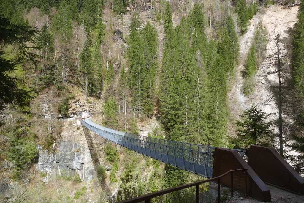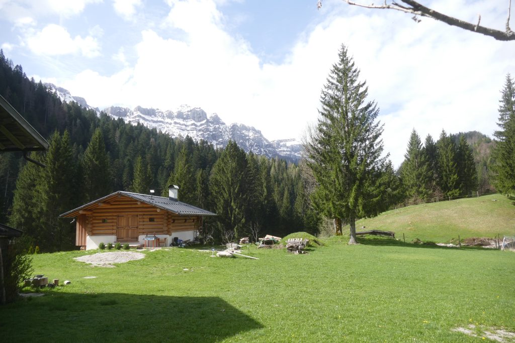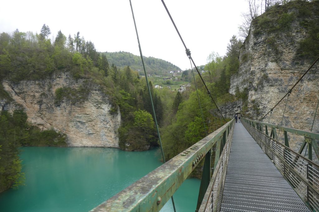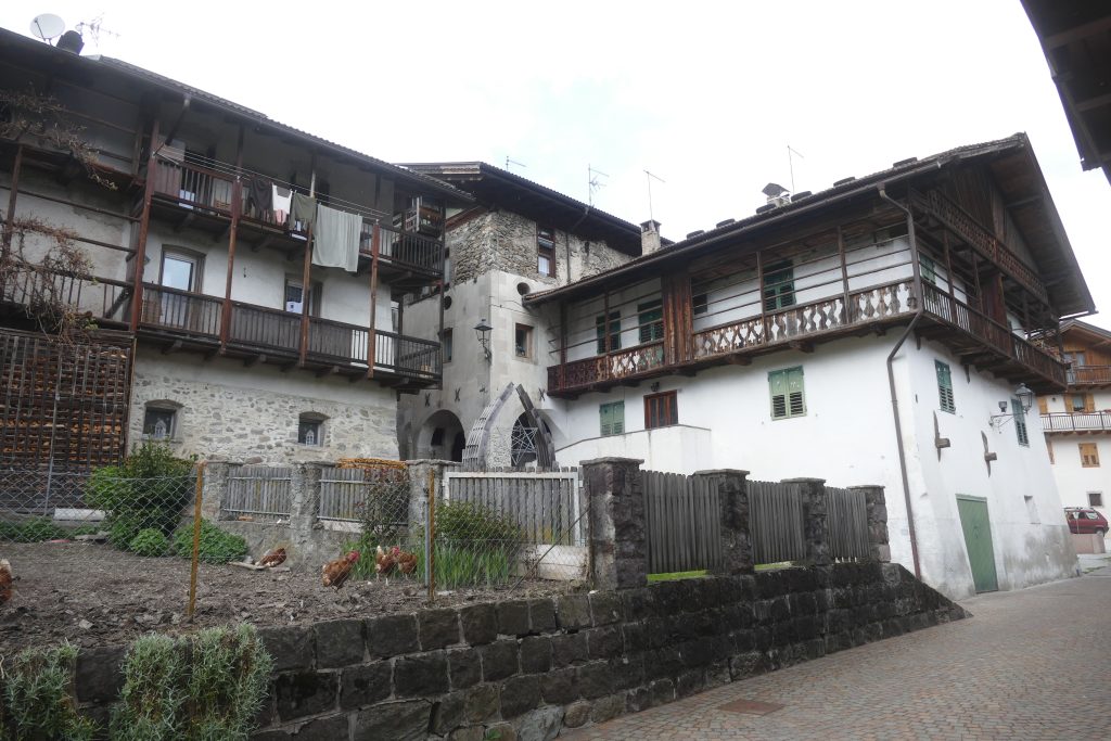Heute machen wir noch einen Abstecher in die Dolomiten und fahren ca. 20 km weiter nach Mezzano. Die Straße, die uns zum Ausgangspunkt unseres Rundweges zur Tibetischen Brücke in Val Noàna bringen soll, ist gesperrt. Wir schauen auf der Karte und sehen einen Parkplatz am Refugio Fonteghi auf 1100 m Höhe, das auch an unserer geplanten Wanderung liegt. Eine abenteuerliche schmale Straße, z.T. mit 180° Kurven, Brücken, Tunneln und Überhängen fahren wir zum Refugio. Dann starten wir zuerst zur tibetischen Brücke von ungefähr 70 Meter Länge, die sich 30 Meter über den Wildbach Giasinozza spannt. Von hier aus geht es auf einem breiten Weg, der später zu einem schmalen Waldpfad wird, immer bergan über den „Grat“ auf dem Monte Cordognè auf 1313 m Höhe. Wieder abwärts, vorbei an der Kirche S. Giovanni und an Weiden entlang bis zur Staumauer mit dem smaragdgrünen See. Von hier müssen wir dann der kleinen Fahrstraße folgen, auf der wir das Refugio erreichen. Mittlerweile türmen sich die Wolken über den Bergen und als wir Mezzano erreichen, beginnt es ein wenig zu regnen. Später spazieren wir noch durch Mezzano, das von der typischen einfachen Architektur des Valle di Primiero geprägt ist und zu den schönsten Dörfern Italiens zählt.