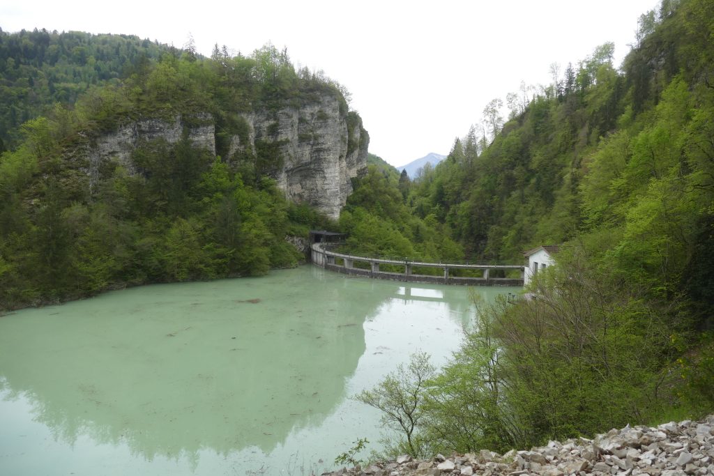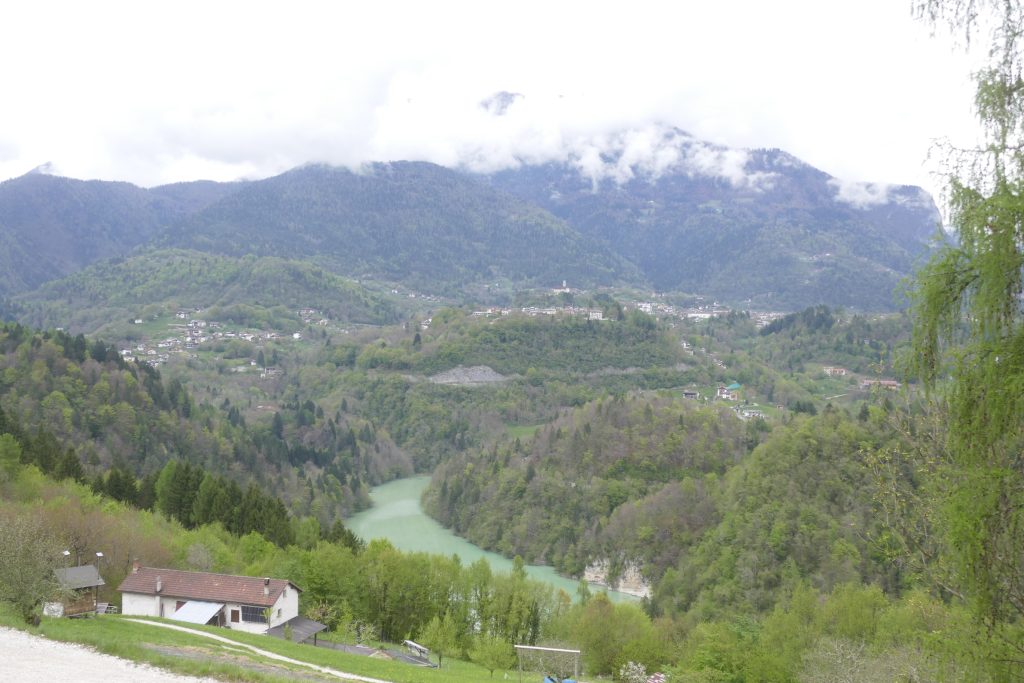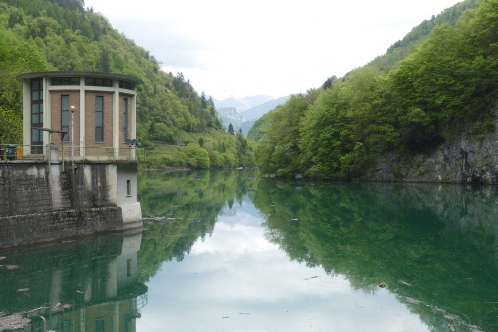Am Morgen regnet es. Wir fahren weiter nach Lamon, östlich von Trient. In der Kaiserzeit wurde Lamon durch die Straße Claudia Augusta Altinate durchquert, eine Militärstraße, die Quarto d’Altino mit der Donau verband. Um 12 Uhr hört es auf zu regnen und wir starten zu unserer Wanderung. Zuerst gehen wir jedoch noch zur römischen Brücke. Dann folgen wir dem Weg zur Passarella, einem Metallsteg über den Senaiga-See. Es ist ein künstlicher See, der nach dem Zweiten Weltkrieg durch die Blockierung des Senaiga-Baches mit einem 68 m hohen Doppelbogendamm entstand. Bei der Flutung der Schlucht des Senaiga-Wildbach wurden die Straßen, die die linke mit der rechten Seite des Wildbachs verbinden, überflutet. Der Gehweg wurde gebaut, um den Einheimischen den Übergang zu ermöglichen. Von nun an folgen wir zuerst dem Waldweg steil bergan, bevor dieser auf einem Forstweg auf 740 m ansteigt. Dann geht es wieder bergab zum See hinunter und zu einem weiteren interessanten Teil des Weges durch mehrere Verbindungstunnel zur Kommandozentrale und über den Damm. Das letzte Stück ist auf der steilen Asphaltstraße zurück nach Lamon.