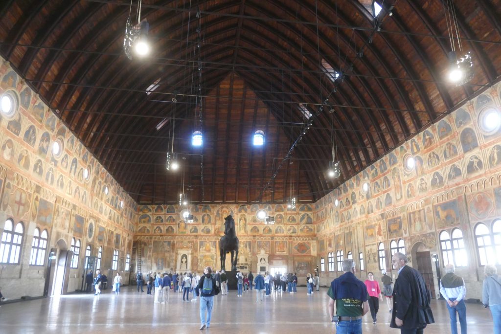 Nach so viel Natur ist heute Kultur angesagt. Wir laufen die ca. 2,5 km ins Zentrum von Padua und kommen zuerst zu einem der schönsten und größten Plätze Italiens, dem Prato della Valle mit knapp 9.000 qm Grundfläche. Die Insel in der Mitte des Platzes, mit ihrem Kanal, wird umsäumt von 78 Statuen und Obelisken. Hier befindet sich die Basilika Santa Giustina mit der Statue der Heiligen Justine auf der höchsten Kuppel. Ein Stück weiter gelangen wir zu einer der bedeutendsten Attraktion von Padua, der Basilika des Heiligen Antonius mit den 30 Skulpturen der Figurengruppe unter dem Hochaltar des berühmten Bildhauers Donatello. Ganz in der Nähe befindet sich die Piazza delle Erbe und della Frutta, die durch das Rathaus getrennt sind. Im Untergeschoss des Palazzo delle Ragione befindet sich die Markthalle. Weit interessanter ist der Rats- und Gerichtssaal im Obergeschoss. Ein Stück weiter ist das berühmte Caffé Pedrocchi. Höhepunkt ist der Dom von Padova mit dem Baptisterium, das mit einem fantastischen Freskenzyklus ausgeschmückt ist. Wir gehen noch zur Cappella degli Scrovegni, die leider geschlossen ist, oder für die nächste Zeit ausgebucht? Nach so viel Kultur fahren wir im Anschluss weiter ins Po-Delta nach Mesola.