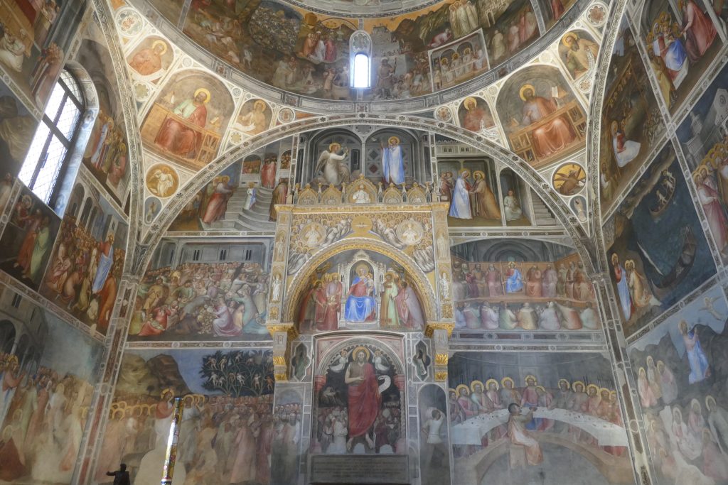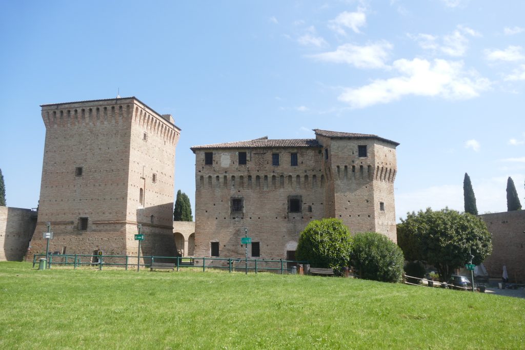 Wir fahren von unserem Stellplatz in Argenta weiter nach Forli mit einer eindrucksvollen Altstadt. Von der Piazza Aurelio Saffi, an der der Palazzo del Podestà sowie die Basilica di San Mercuriale aus dem 12. Jahrhundert mit ihrem imposanten Turm steht, laufen wir zur Rocca die Ravaldino, auch als Rocca die Caterina bekannt. Sie wurde nach den modernsten Vorgaben der Militärarchitektur mit einem quadratischen Grundriss und runden Türmen an den Ecken errichtet. Überragt wird sie von einem imposanten Hauptturm in der Mitte der nordwestlichen Ringmauer. Wir bekommen eine kleine, interessante Führung durch die Burg. Vorbei am Palazzo del Monte di Pietà kommen wir zum Duomo di Forli. Nach dem Stadtrundgang fahren wir in das nur wenige Kilometer entfernte Cesana.