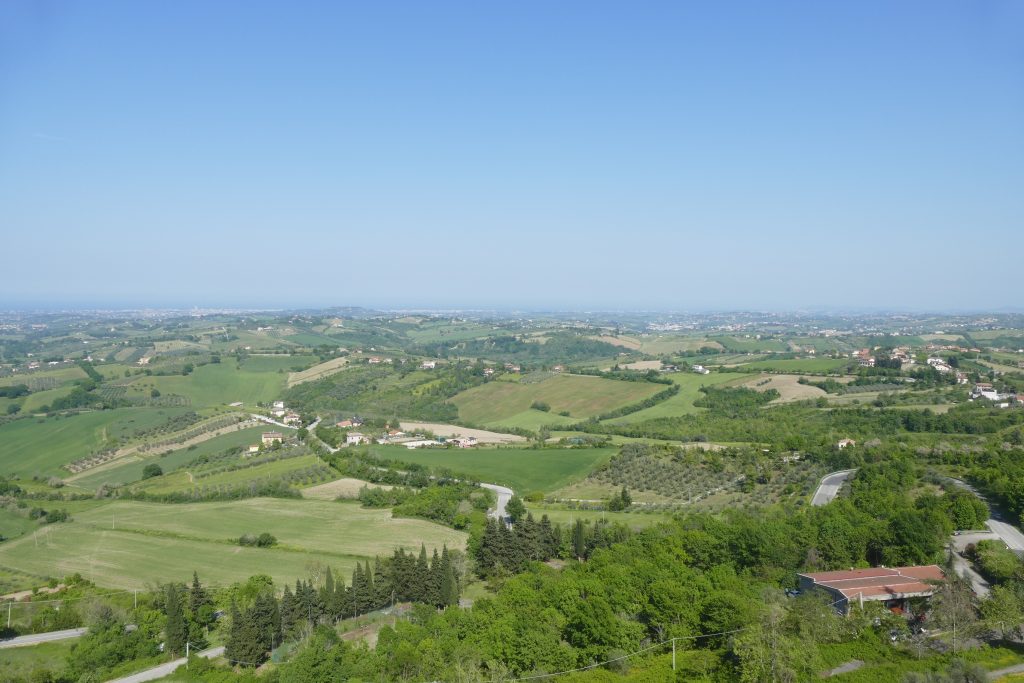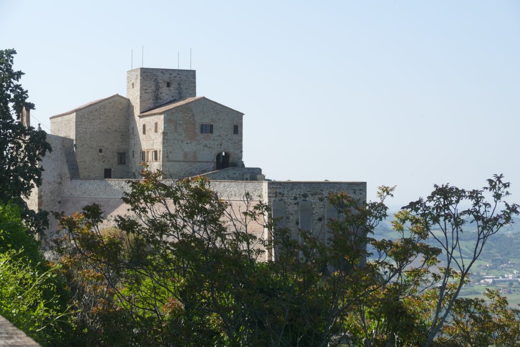 Am Nachmittag besichtigten wir den Ort, in dem die Wiege der Herrscherfamilie Malatesta war. Schon bei der Anfahrt haben wir die Rocca Malatestiana, auch Rocca del Sasso, auf dem Felsvorsprung erblickt. Die Malatesta-Burg hat einen mittelalterlichen Grundriss mit historischen Gebäuden. Im Inneren gibt es ein kleines Museum mit altem Kinderspielzeug. Von der Terrasse haben wir einen atemberaubenden Panoramablick bis zum Meer und in der Ferne Rimini, sowie auf das Hinterland mit den von Burgen gekrönten Hügeln und San Marino.