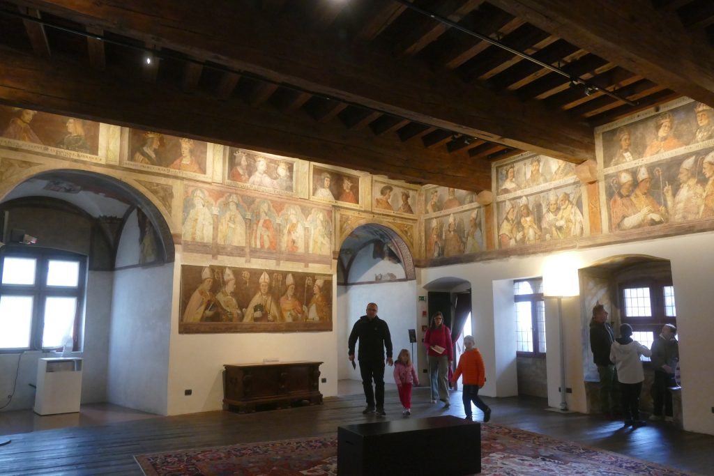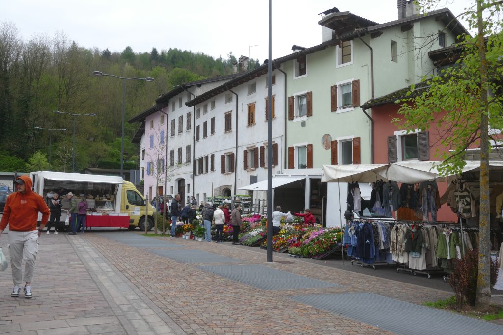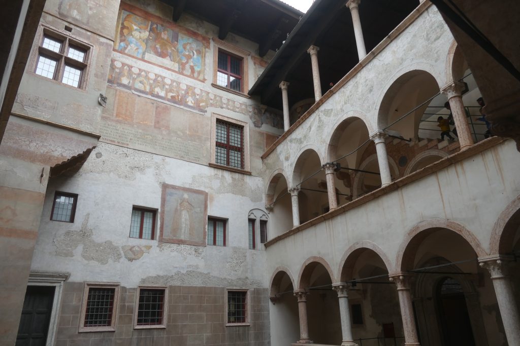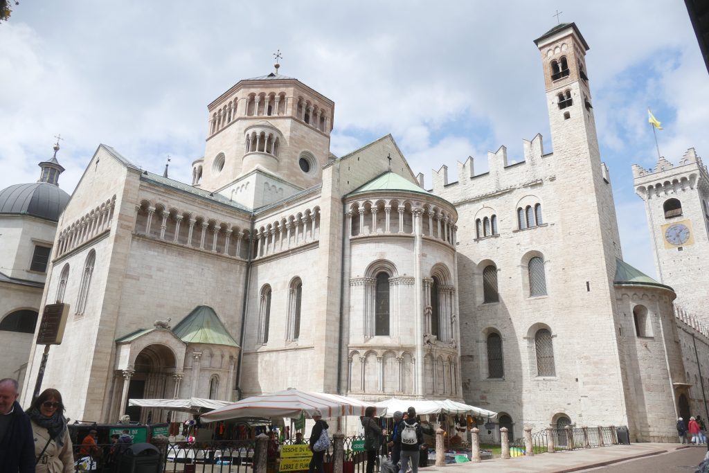 Heute entscheiden wir uns, mit dem Bus nach Trient zu fahren. Doch zuerst schlendern wir durch den riesigen Markt in Pergine Valsungana. Gerade mal 17 Minuten dauert die Busfahrt nach Trient. Als wir ankommen, regnet es leicht. So gehen wir nach dem Besuch der Touristeninformation zuerst zum Castello del Buonconsiglio, der ehemaligen Residenz des Fürstbischofs von Trient. Danach sehen wir uns einige der vielen Sehenswürdigkeiten, wie die Kirche Santa Maria Maggiore, den Domplatz mit dem Dom San Vigilio, dem Palazzo Pretorio und dem Neptunbrunnen an. Über die Geschichte der Stadt, wie die Reise der deutschen Kaiser nach Rom, das Konzil 1545, oder das Fürstbistum, das über Jahrhunderte das Tal bestimmt, berichten die Fresken auf dem Palazzi der Altstadt.