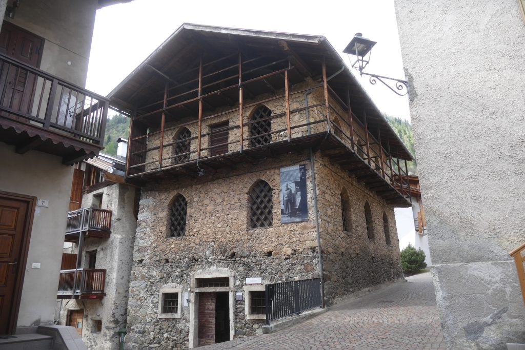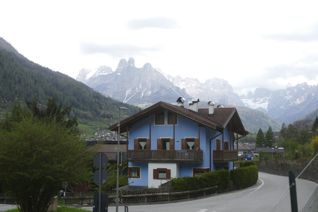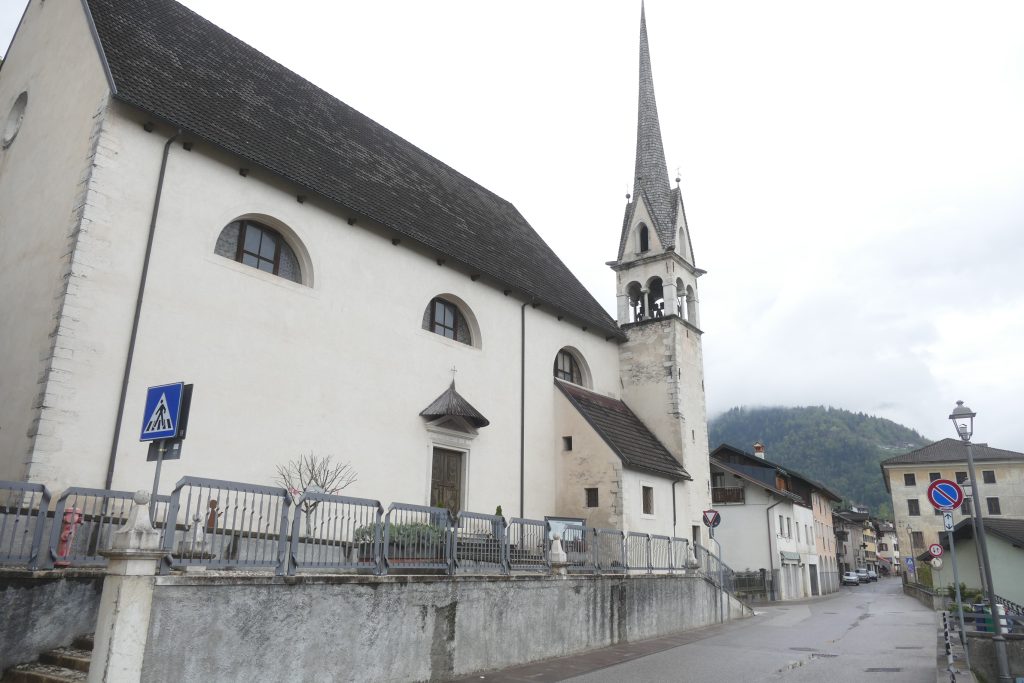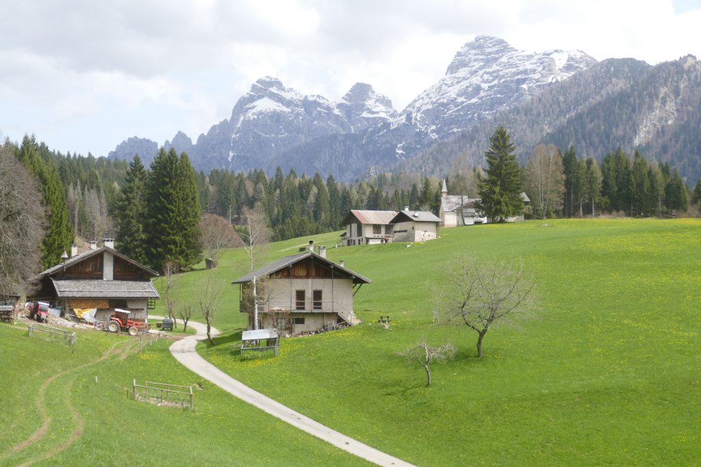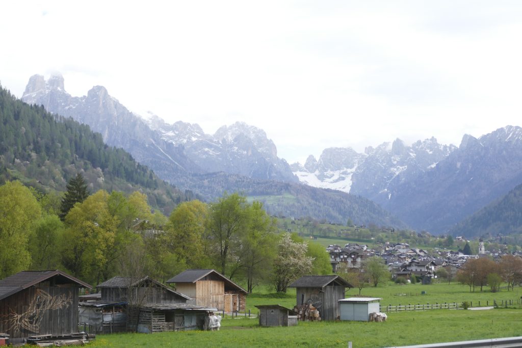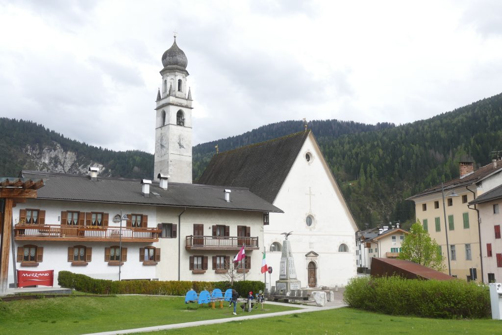 Heute machen wir noch einen Abstecher in die Dolomiten und fahren ca. 20 km weiter nach Mezzano. Die Straße, die uns zum Ausgangspunkt unseres Rundweges zur Tibetischen Brücke in Val Noàna bringen soll, ist gesperrt. Wir schauen auf der Karte und sehen einen Parkplatz am Refugio Fonteghi auf 1100 m Höhe, das auch an unserer geplanten Wanderung liegt. Eine abenteuerliche schmale Straße, z.T. mit 180° Kurven, Brücken, Tunneln und Überhängen fahren wir zum Refugio. Dann starten wir zuerst zur tibetischen Brücke von ungefähr 70 Meter Länge, die sich 30 Meter über den Wildbach Giasinozza spannt. Von hier aus geht es auf einem breiten Weg, der später zu einem schmalen Waldpfad wird, immer bergan über den „Grat“ auf dem Monte Cordognè auf 1313 m Höhe. Wieder abwärts, vorbei an der Kirche S. Giovanni und an Weiden entlang bis zur Staumauer mit dem smaragdgrünen See. Von hier müssen wir dann der kleinen Fahrstraße folgen, auf der wir das Refugio erreichen. Mittlerweile türmen sich die Wolken über den Bergen und als wir Mezzano erreichen, beginnt es ein wenig zu regnen. Später spazieren wir noch durch Mezzano, das von der typischen einfachen Architektur des Valle di Primiero geprägt ist und zu den schönsten Dörfern Italiens zählt.