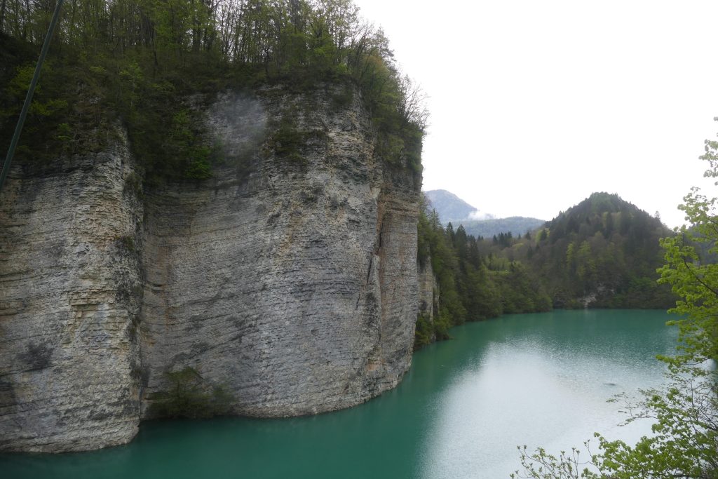 Am Morgen regnet es. Wir fahren weiter nach Lamon, östlich von Trient. In der Kaiserzeit wurde Lamon durch die Straße Claudia Augusta Altinate durchquert, eine Militärstraße, die Quarto d’Altino mit der Donau verband. Um 12 Uhr hört es auf zu regnen und wir starten zu unserer Wanderung. Zuerst gehen wir jedoch noch zur römischen Brücke. Dann folgen wir dem Weg zur Passarella, einem Metallsteg über den Senaiga-See. Es ist ein künstlicher See, der nach dem Zweiten Weltkrieg durch die Blockierung des Senaiga-Baches mit einem 68 m hohen Doppelbogendamm entstand. Bei der Flutung der Schlucht des Senaiga-Wildbach wurden die Straßen, die die linke mit der rechten Seite des Wildbachs verbinden, überflutet. Der Gehweg wurde gebaut, um den Einheimischen den Übergang zu ermöglichen. Von nun an folgen wir zuerst dem Waldweg steil bergan, bevor dieser auf einem Forstweg auf 740 m ansteigt. Dann geht es wieder bergab zum See hinunter und zu einem weiteren interessanten Teil des Weges durch mehrere Verbindungstunnel zur Kommandozentrale und über den Damm. Das letzte Stück ist auf der steilen Asphaltstraße zurück nach Lamon.