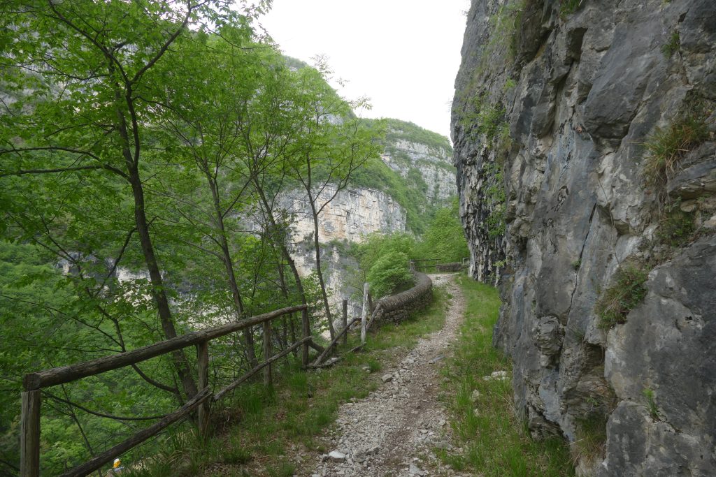 Die Nacht hat es kräftig geregnet, doch der Morgen sieht schon wieder recht freundlich aus. Wir fahren weiter in den Bezirk Venetien in das kleine Dorf Enego. Hier starten wir zu unserer Wanderung Strada del Genio, einer wunderschönen Wanderung im Val Brenta auf der Seite des Monte Grappa. Die Strada del Genio ist ein militärisches Werk, das vor dem Ersten Weltkrieg, Ende des 19. Jahrhunderts gebaut wurde. Es war Teil der Brenta-Cismon-Barriere und diente dem Verteidigungszweck, um einen möglichen österreichischen Vorstoß von Trient aus über das Valsugana zu verhindern. Wir gehen zuerst an der Bahnlinie nach Trient entlang, bevor die Strada del Genio in unendlichen Kehren, mit Höhlenunterständen und Informationstafeln an der Genio-Straße schnell an Höhe gewinnt, bis wir auf eine Asphaltstraße stoßen. Von hier aus führt ein steiler schmaler Pfad zum Bauernhaus Ciod im Gebiet Ai Prai dem höchsten Punkt unserer Wanderung auf 650 m. Nun geht es steil bergab auf einem steinigen Waldpfad bis wir das Dorf Incino erreichen, wo wir schon den Corlo-See sehen. Wir überqueren die Staumauer mit dem Wasserkraftwerk am Wildbach Cismon und nach einem Tunnel folgt eine Steigung, die uns zum Dorf Corlo bringt. Ab hier gehen wir durch ein Waldstück bis zur Asphaltstraße, die das letzte Stück zum Ausgangspunkt zurückführt.