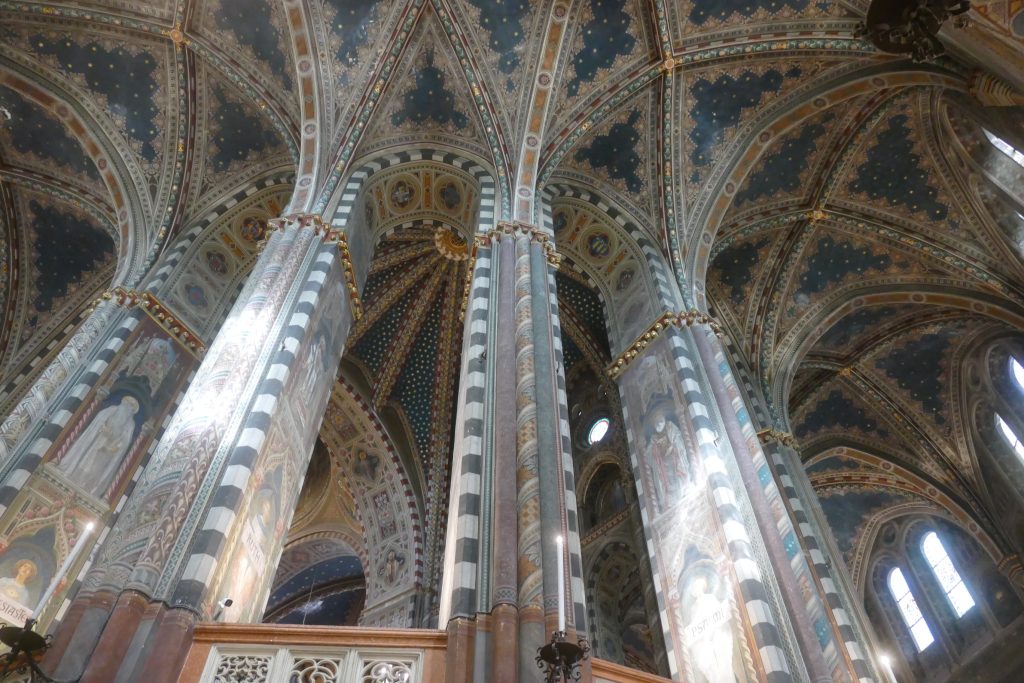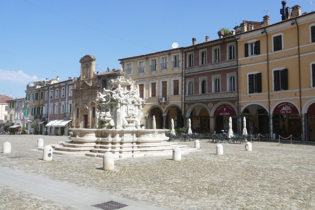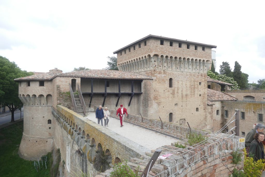 Wir fahren von unserem Stellplatz in Argenta weiter nach Forli mit einer eindrucksvollen Altstadt. Von der Piazza Aurelio Saffi, an der der Palazzo del Podestà sowie die Basilica di San Mercuriale aus dem 12. Jahrhundert mit ihrem imposanten Turm steht, laufen wir zur Rocca die Ravaldino, auch als Rocca die Caterina bekannt. Sie wurde nach den modernsten Vorgaben der Militärarchitektur mit einem quadratischen Grundriss und runden Türmen an den Ecken errichtet. Überragt wird sie von einem imposanten Hauptturm in der Mitte der nordwestlichen Ringmauer. Wir bekommen eine kleine, interessante Führung durch die Burg. Vorbei am Palazzo del Monte di Pietà kommen wir zum Duomo di Forli. Nach dem Stadtrundgang fahren wir in das nur wenige Kilometer entfernte Cesana.