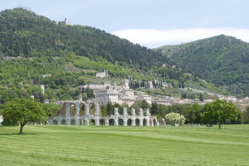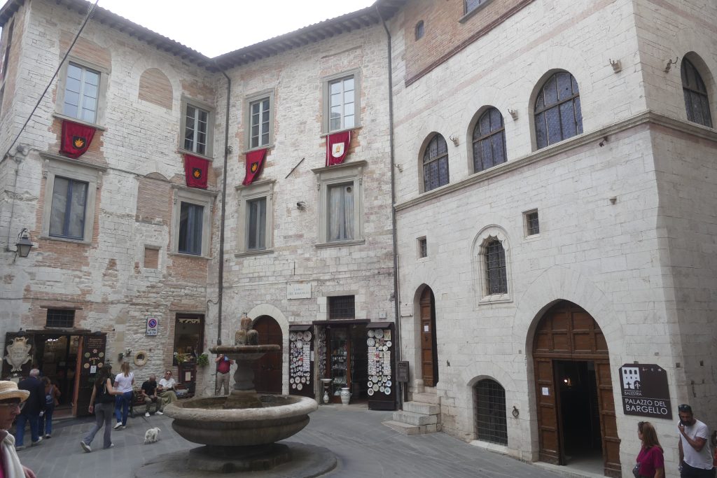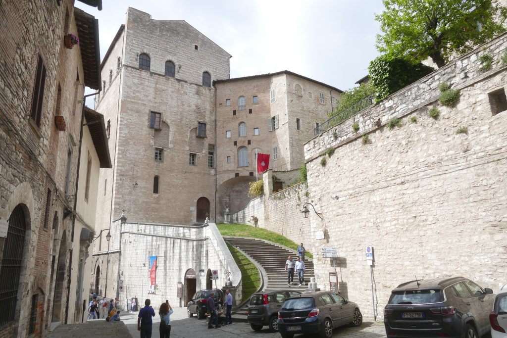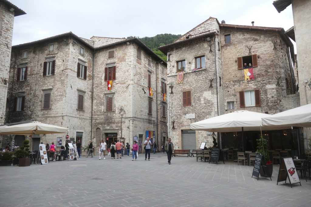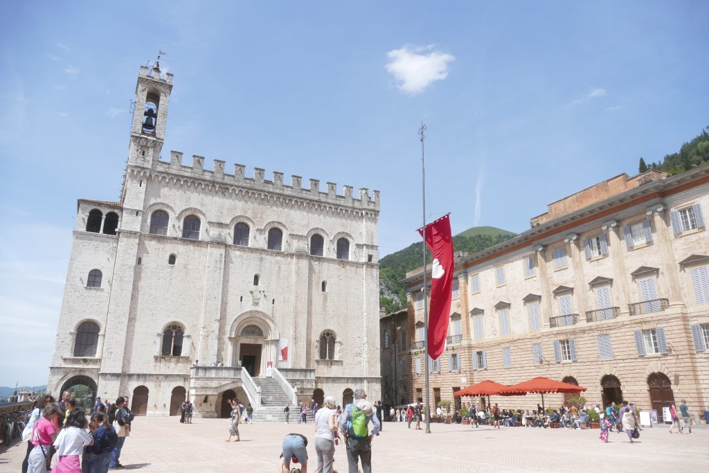 Ca. 100 km weiter in südliche Richtung befindet sich eine der besterhaltenen mittelalterlichen Städte Italiens, Gubbio. Eingebettet in eine wunderschöne Landschaft auf den Hängen des Berges Monte Ingino liegt die Stadt, mit Stadtmauern um das historische Zentrum, mit Gebäuden aus verschiedenen Epochen. Wir betreten die Altstadt an der Chiesa di San Francesco und laufen an der Logge dei Tiratori vorbei durch die Via della Repubblica zur Chiesa di San Giovanni. Mit dem Fahrstuhl erreichen wir die Piazza Grande mit dem Palazzo dei Consoli. Ein zweiter Fahrstuhl bringt uns zum Wahrzeichen der Stadt, dem Duomo. Ein Pfad führt in Serpentinen mit spektakulärer Aussicht auf die Dächer von Gubbio bergan, zur prächtigen Basilika S. Ubaldo. Wieder in der Stadt gehen wir durch die Via XX Settembra zur Porta die Sant´Agostino und durch die Via Savelli Della Porta entlang bis zu einem weiteren wichtigen Symbol der Stadt, die Piazza del Bargello, wo sich der gleichnamige Palast und der berühmte Fontana dei Matti befinden. Schließlich gehen wir noch zur Piazza C. Brundo mit der Chiesa di San Domenico, bevor wir zum Parkplatz zurückgehen.