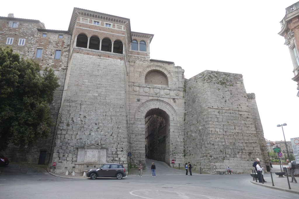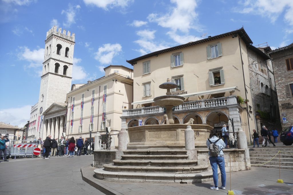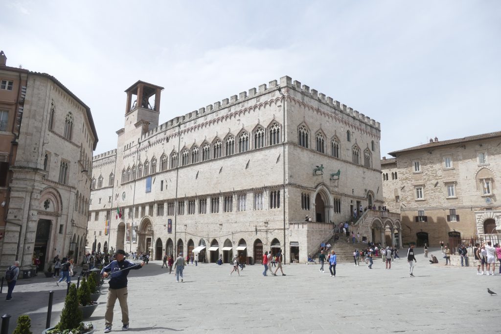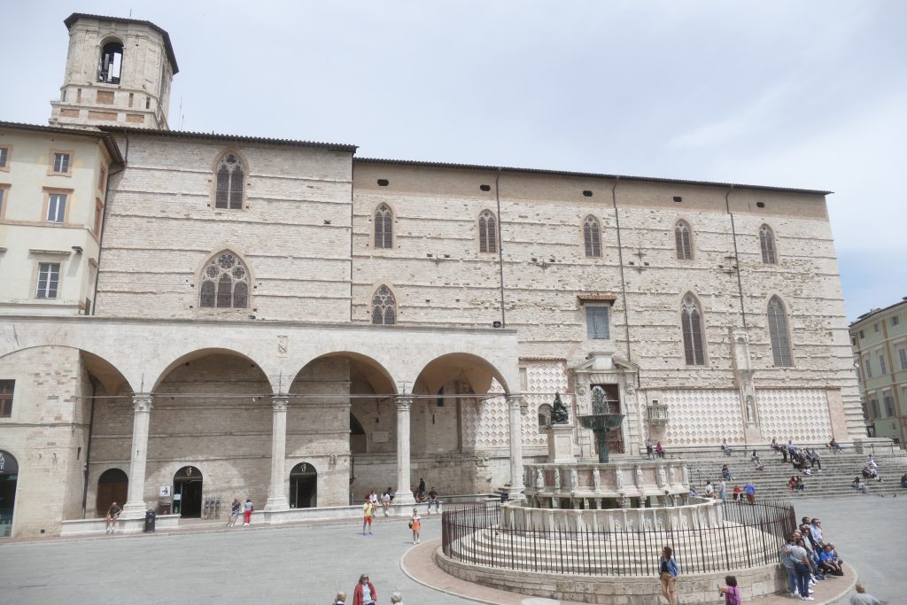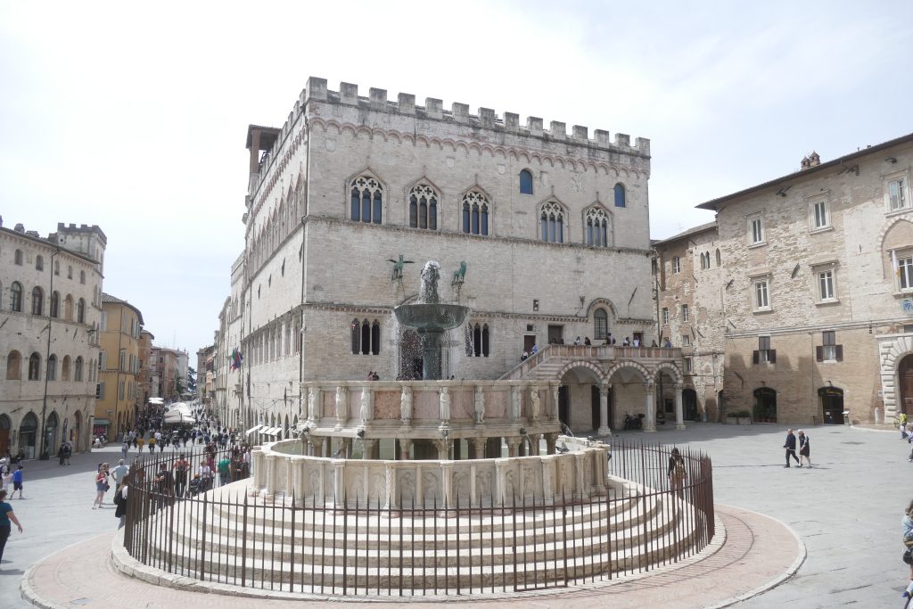 Auch wenn sich Perugia weltlicher anfühlt als der größte Teil der Region, ist Umbrien die Wiege des westlichen Mönchtums, da es die Heimat des in Norcia geborenen Heiligen Benedikt ist. Vom Parkplatz laufen wir steil hinauf in die Altstadt und kommen zur Piazza della Repubblica, von der wir in den Corso Vannucci einbiegen. Schon stehen wir vor dem gewaltigen Gebäude der Nationalgalerie. Im Atrium sind die Bronzestatuen, der Greif und der Löwe, die Symbole Perugias ausgestellt. Wenige Schritte weiter befinden wir uns auf der Piazza IV Novembre mit der prächtigen Fontana Maggiore, ein romanisches Meisterwerk. Der Marmorbrunnen ist mit kühnen, dekorativen Schnörkeln verziert. Dahinter steigen wir die Stufen hinauf zur gotischen Kathedrale. Das Innere besteht aus drei Schiffen, massiven Säulen und mit dekorativen Motiven bedeckten Gewölben. Von hier aus gehen wir zu einem Aussichtspunkt über die Stadt und weiter durch enge, mit bis zu 6-stöckigen Gebäuden flankierten Gassen mit Bögen und Tunneln. Wir sehen auf das vor gut 1.000 Jahren errichtet Aquädukt, das Wasser in das Zentrum von Perugia brachte. Dann durchschreiten wir die ursprüngliche Stadtmauer durch das nördliche Tor, den Arco Etrusco. Er ist das imposanteste der etruskischen Überreste aus dem 3. Jahrhundert v. Chr und trägt die Inschrift „Augusta Perusia“. Wieder auf der Piazza IV Novembre sehen wir uns den Palazzo dei Priori (Rathaus), einer der größten öffentlichen Paläste Italiens an. Fächerförmige Stufen führen zur Sala dei Notari, dem Versammlungssaal der Anwälte, der Ende des 13. Jahrhunderts bemalt wurde. Vom Giardini Carducci, der an der Stelle einer zerstörten Festung steht, haben wir einen der schönsten Ausblicke auf Perugia und die umliegenden Hügel. Einzigartig ist die Rocca Paolina, das geheime Perugia. Eine Reihe von Tunneln vermittelt einen Eindruck von Perugias einstigen Ecken und Winkeln. Das Wirrwarr aus gepflasterten Gassen und gewölbten Treppenhäusern mit Rolltreppen ist im Wesentlichen alles, was von einer einstmals imposanten Festung übrig geblieben ist.