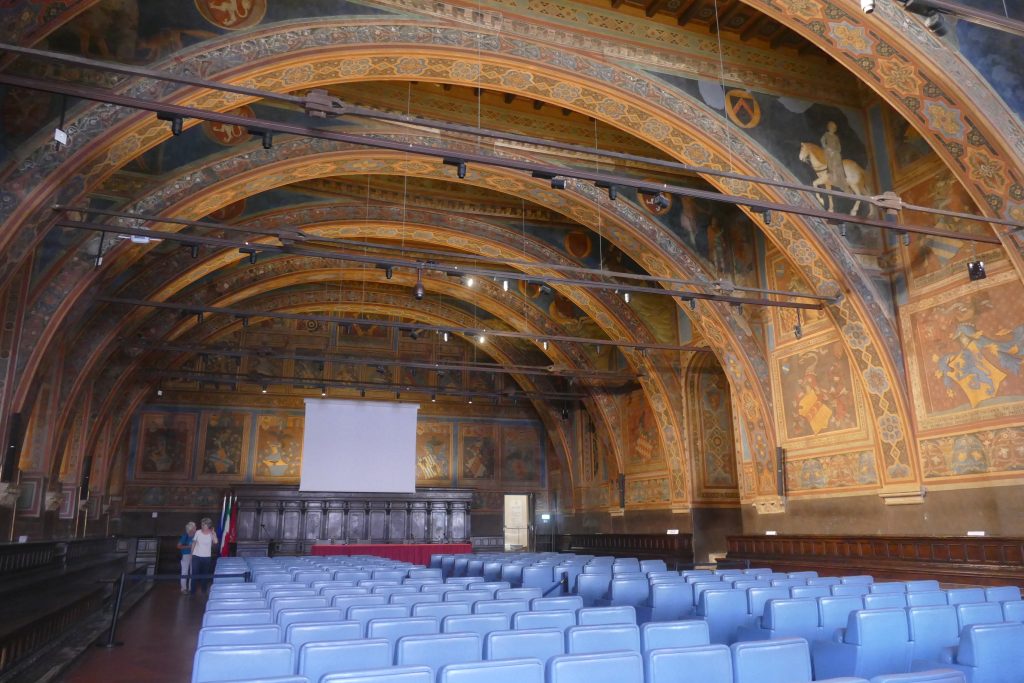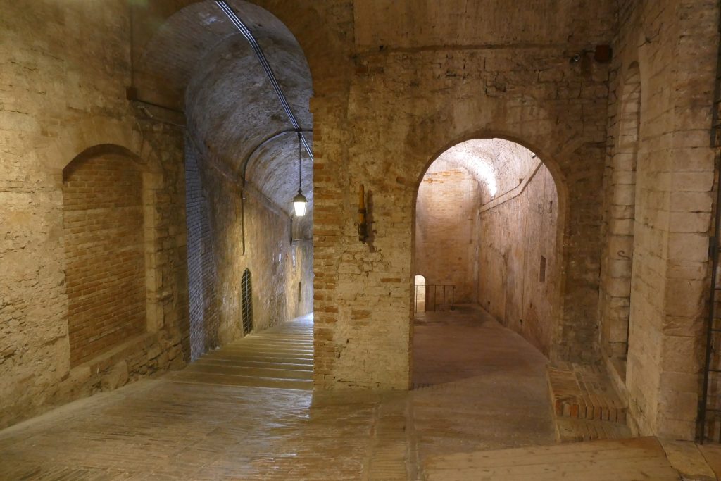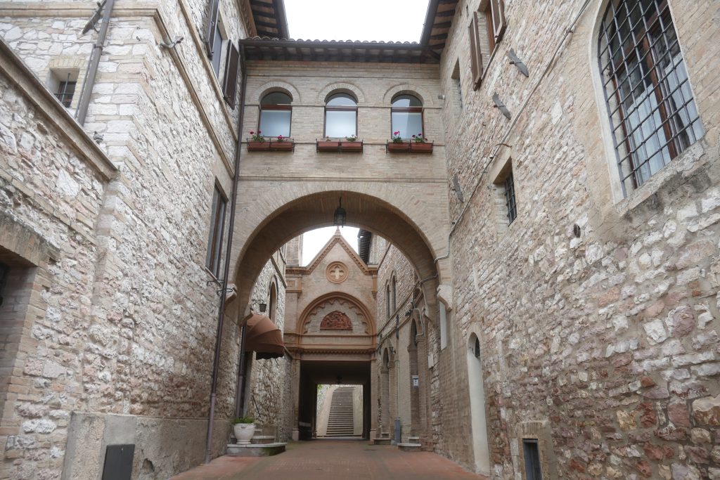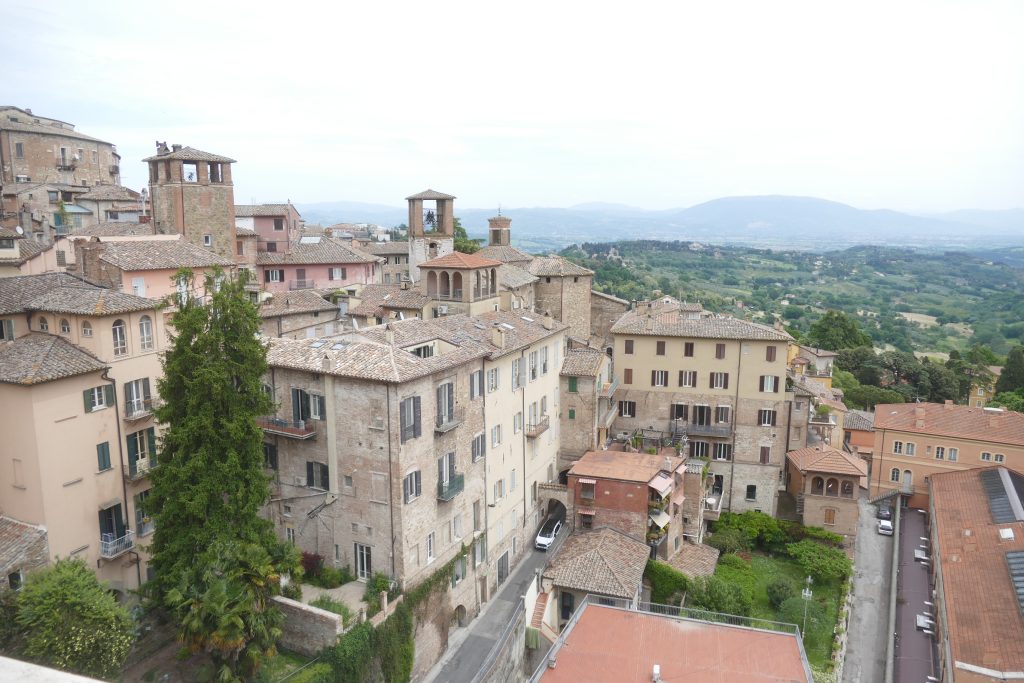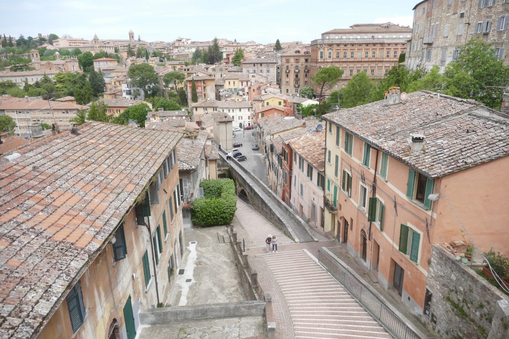 Auch wenn sich Perugia weltlicher anfühlt als der größte Teil der Region, ist Umbrien die Wiege des westlichen Mönchtums, da es die Heimat des in Norcia geborenen Heiligen Benedikt ist. Vom Parkplatz laufen wir steil hinauf in die Altstadt und kommen zur Piazza della Repubblica, von der wir in den Corso Vannucci einbiegen. Schon stehen wir vor dem gewaltigen Gebäude der Nationalgalerie. Im Atrium sind die Bronzestatuen, der Greif und der Löwe, die Symbole Perugias ausgestellt. Wenige Schritte weiter befinden wir uns auf der Piazza IV Novembre mit der prächtigen Fontana Maggiore, ein romanisches Meisterwerk. Der Marmorbrunnen ist mit kühnen, dekorativen Schnörkeln verziert. Dahinter steigen wir die Stufen hinauf zur gotischen Kathedrale. Das Innere besteht aus drei Schiffen, massiven Säulen und mit dekorativen Motiven bedeckten Gewölben. Von hier aus gehen wir zu einem Aussichtspunkt über die Stadt und weiter durch enge, mit bis zu 6-stöckigen Gebäuden flankierten Gassen mit Bögen und Tunneln. Wir sehen auf das vor gut 1.000 Jahren errichtet Aquädukt, das Wasser in das Zentrum von Perugia brachte. Dann durchschreiten wir die ursprüngliche Stadtmauer durch das nördliche Tor, den Arco Etrusco. Er ist das imposanteste der etruskischen Überreste aus dem 3. Jahrhundert v. Chr und trägt die Inschrift „Augusta Perusia“. Wieder auf der Piazza IV Novembre sehen wir uns den Palazzo dei Priori (Rathaus), einer der größten öffentlichen Paläste Italiens an. Fächerförmige Stufen führen zur Sala dei Notari, dem Versammlungssaal der Anwälte, der Ende des 13. Jahrhunderts bemalt wurde. Vom Giardini Carducci, der an der Stelle einer zerstörten Festung steht, haben wir einen der schönsten Ausblicke auf Perugia und die umliegenden Hügel. Einzigartig ist die Rocca Paolina, das geheime Perugia. Eine Reihe von Tunneln vermittelt einen Eindruck von Perugias einstigen Ecken und Winkeln. Das Wirrwarr aus gepflasterten Gassen und gewölbten Treppenhäusern mit Rolltreppen ist im Wesentlichen alles, was von einer einstmals imposanten Festung übrig geblieben ist.