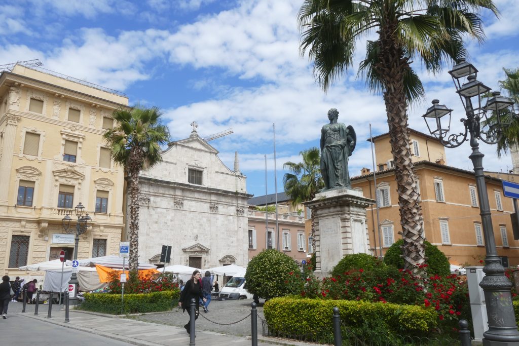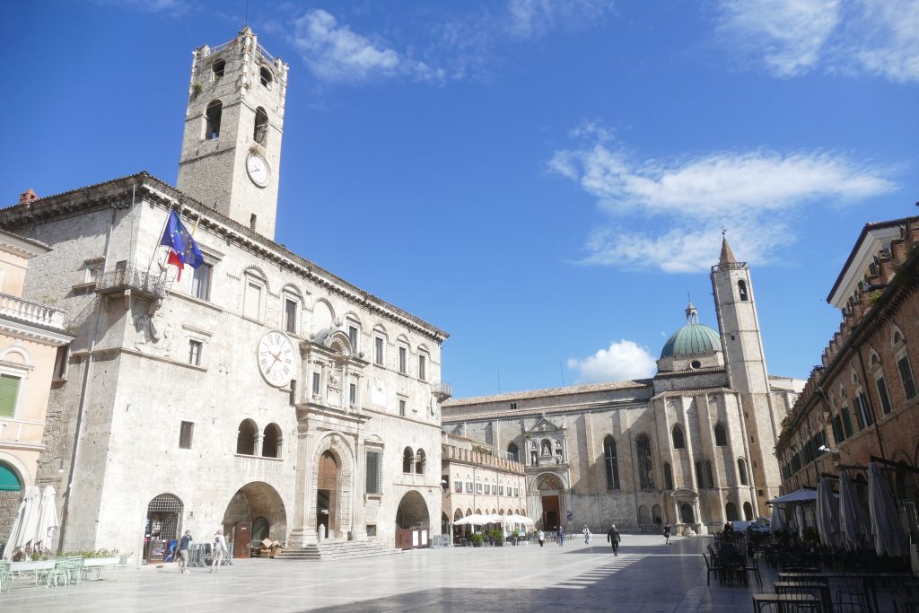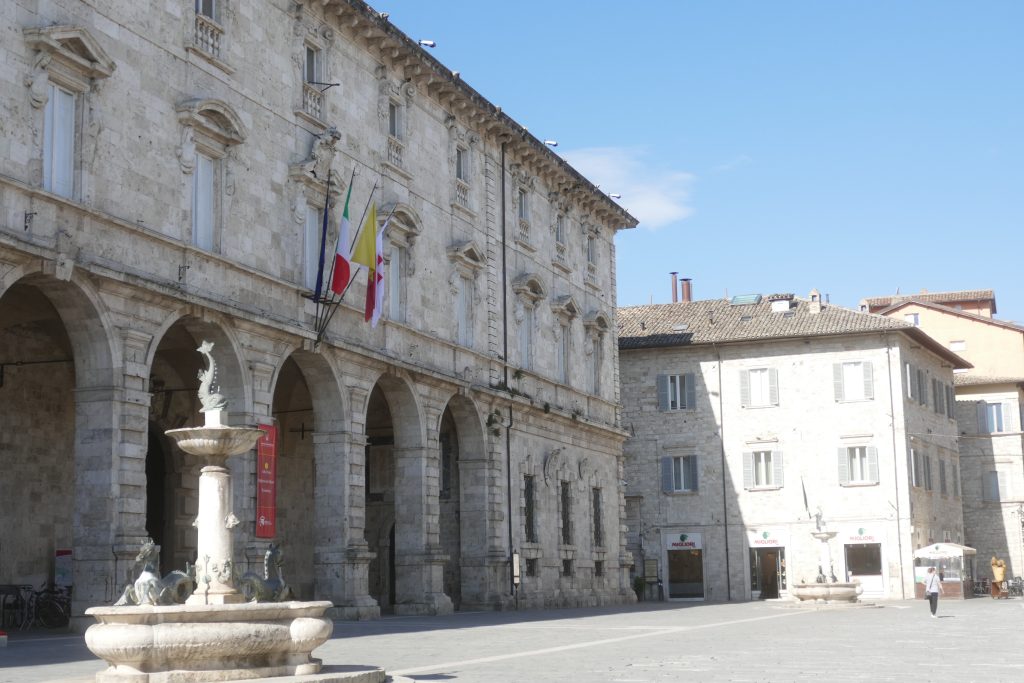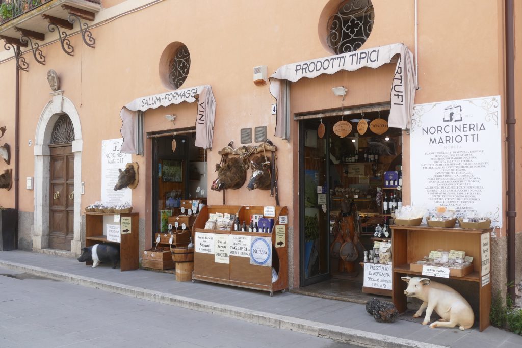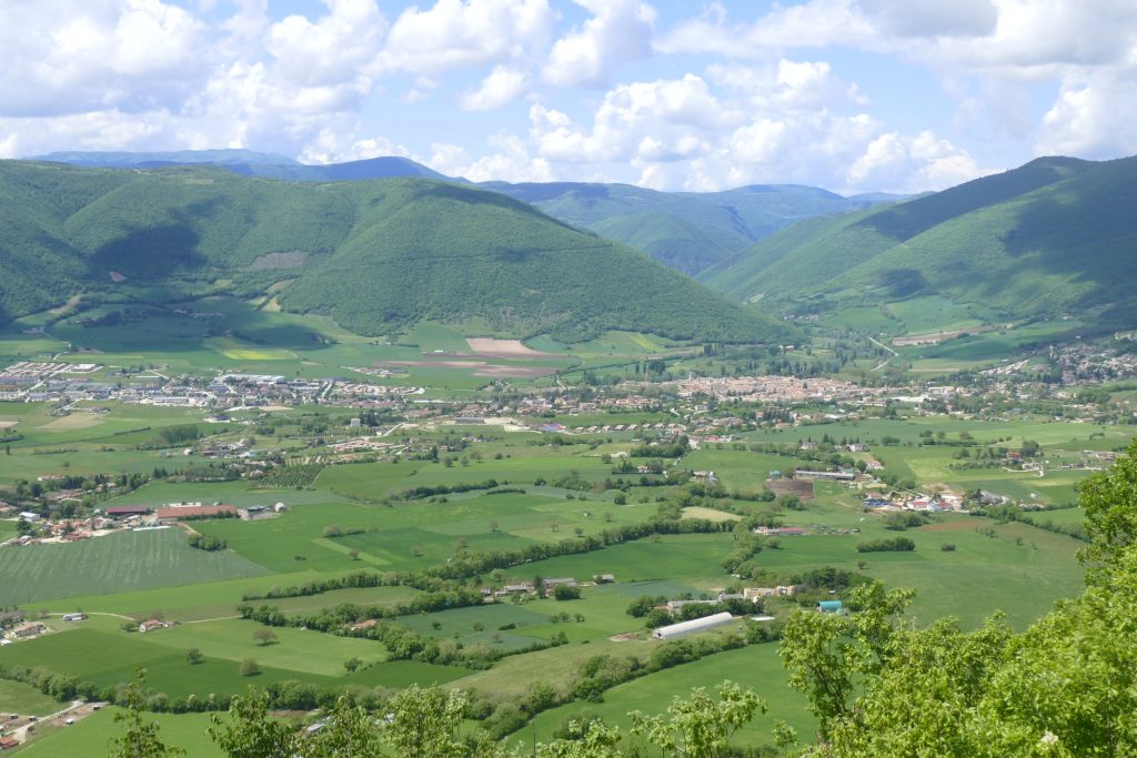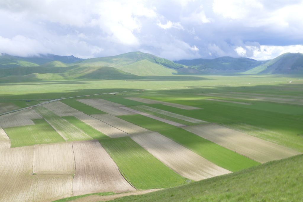 Am Morgen hängt der Nebel in den Tälern. Wir fahren weiter in die von Bergen umgebene Stadt Norcia, am Fuß der beeindruckenden Monti Sibillini. Der historische Kern ist von einer Stadtmauer mit acht Stadttoren und Türmen aus dem 13. Jahrhundert umgeben. Von der Porta Massani betreten wir die Stadt und gehen auf dem Corso Sertorio zum Hauptplatz Piazza S. Benedetto mit der Statue des Heiligen Benedikt. Leider sind sämtliche Kirchen und historischen Gebäude durch die Erdbebenserie 2016 zerstört. Bei Sant´Angelo, einem Ortsteil von Norcia, ereignete sich das schwerste Erdbeben am 30. Oktober 2016. Unvorstellbar, was hier geschah. Wir schlendern durch die Gassen und entlang der Stadtmauer, teilweise ist das normale Leben zurückgekehrt. Die Basilika des Heiligen Benedikt soll im Oktober wieder hergestellt sein. Anschließend fahren wir eine Bergstraße hinauf in die Bergwelt der Monti Bibillini. Kurvenreich erreichen wir eine Passhöhe, die den Blick auf eine von kahlen Bergen eingerahmte Hochebene öffnet: der Piano Grande di Castelluccio, die Hochebene von Castellucci, die durch einen eiszeitlichen See entstanden ist. Das kleine Dorf Castelluccio auf 1452 m, deren Bewohner von der traditionellen Landwirtschaft leben, ist von weitläufigen Wiesen für die Schafzucht und Feldern umgeben. Im Winter ist das Dorf eingeschneit. Wir machen noch einen Spaziergang durch die ebenfalls durch das Erdbeben schwer gezeichnete Stadt. Kaum ein Haus steht noch.