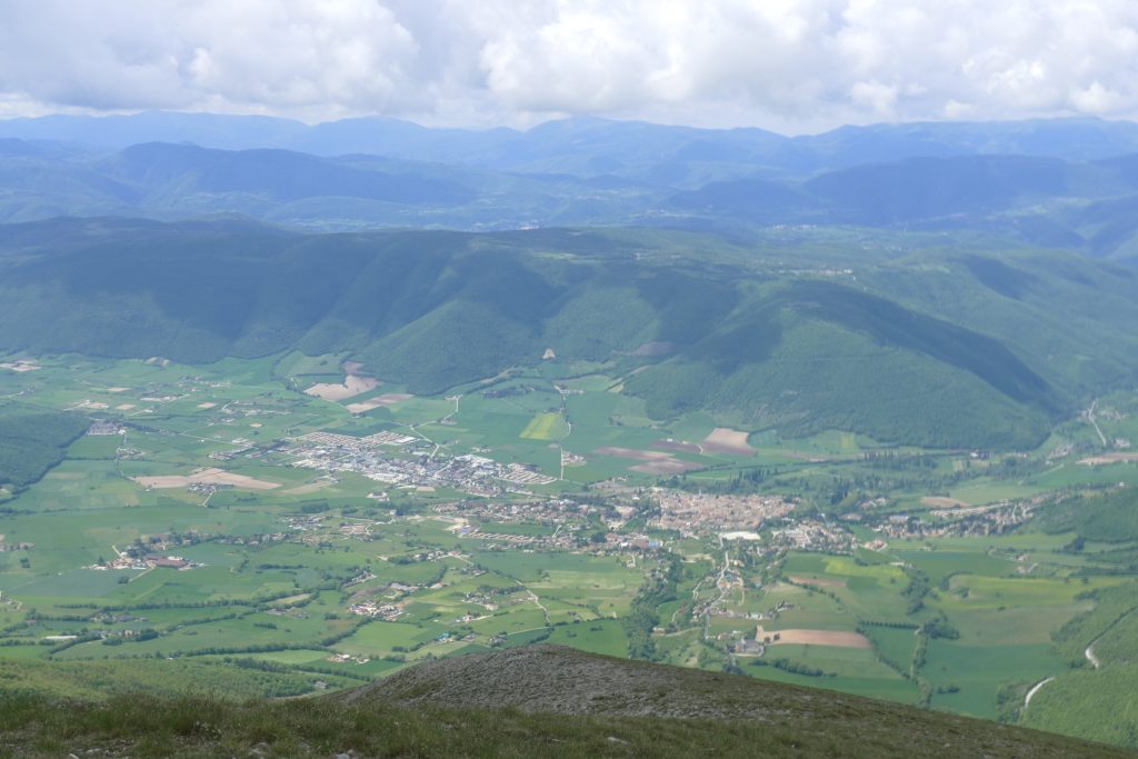 Tief hängt der Nebel über dem Tal bei 7° C. Es ist 9.00 Uhr und die ersten Italiener laufen mit Ihren Gleitschirmen los. So falsch können sie nicht liegen. Auch wir machen uns auf unsere Wanderung Castelluccio – Val Canatra – Forca di Giuda zum Monte Patino. Wir gehen durch das Dorf und biegen auf eine unbefestigte Straße ab, bis wir das Val Canatra erreichen. Nun geht es stetig bergauf an einer Quelle vorbei hinauf bis zu einer Wegkreuzung mit herrlicher Aussicht und uralten Bäumen. Jetzt wird der Anstieg etwas sanfter, bis wir die Forca die Giuda auf 1793 m erreichen. Hier nehmen wir den steilen Anstieg abseits der Wege in Richtung des Vorgipfels des Monte Patino auf 1889 m. Wir müssen noch durch eine Senke, bevor der letzte Anstieg zum Monte Patino auf 1884 m mit dem Gipfelkreuz zu bewältigen ist. Ein 360° Rundumblick auf die umliegenden Berge von denen einer der höchste Berg des Monte Sibillini Gebirgszuges, der Monte Vettore, mit 2478 m ist überwältigt. Weit unten ist Norcia und Campi Veruccio auszumachen. Für den Abstieg nehmen wir den sanften Weg um den Vorgipfel herum bis zur Forca die Giuda und über eine unbefestigte Straße nach Castelluccio zurück. Hier können wir noch einmal den Blick über die Hochebenen von Castelluccio schweifen lassen, die in der Blütezeit zwischen Mai und Juni von Mohnblumen, Kornblumen, Margeriten und Linsen herrliche bunt gefärbt ist. Leider sind wir zur falschen Zeit hier. Im Anschluss fahren wir eine kleine Straße am Fuß des Monte Vettore über einen Pass und dann hinunter durch Dörfer, die ebenfalls schwer vom Erdbeben gezeichnet sind in die Ebene nach Ascoli Piceno.