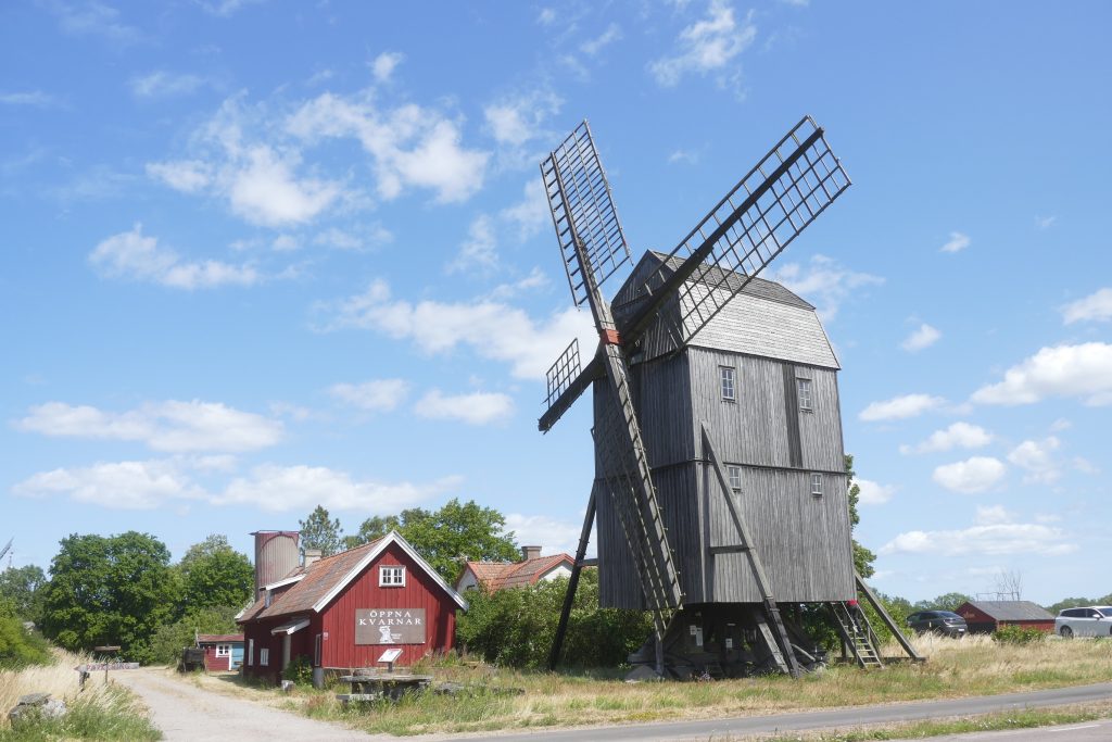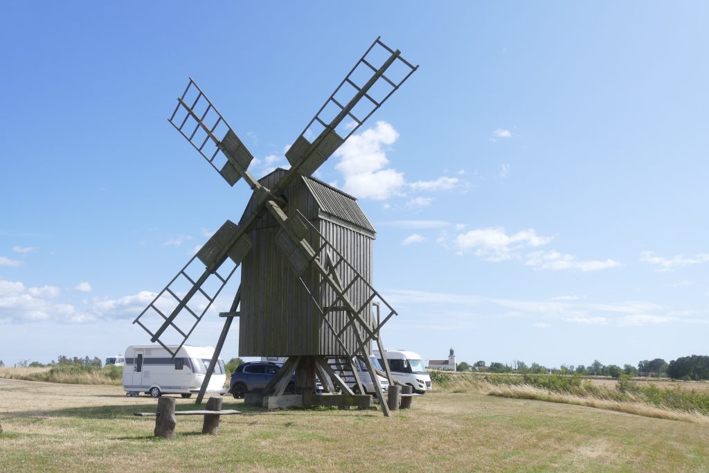 Heute liegt noch einmal eine etwas größere Strecke vor uns. Wir fahren auf der E22 in östliche Richtung und nachdem wir Karlskrona passiert haben, geht es weiter Richtung Norden auf die Insel Öland. Ölands Symbole sind die 300 noch existierenden Windmühlen, von denen der größte Anteil Stumpenmühlen aus dem Ende des 17. bzw. 18. Jahrhunderts sind. Das Mühlenhaus ruht auf einem Baumstumpf, woher sich der Begriff der Stumpenmühle erklärt. Später kamen die größeren und effizienteren niederländischen Mühlen dazu. Kaum sind wir auf der Insel, sehen wir schon die ersten drei Mühlen: Kvarnkungen, Drottningen und Kronprinsen, in die wir auch hineingehen können. Auf der Fahrt in Richtung der Südspitze sehen wir weitere Windmühlen wie auf einer Perlenschnur. Wir suchen uns den Stellplatz am Nunnedalen aus, wo die Resmobacken Windmühle steht. Am Nachmittag machen wir noch einen Spaziergang auf den Landborgsleden und Paradisstigen durch das kleine Waldstück des Nunnedalen.