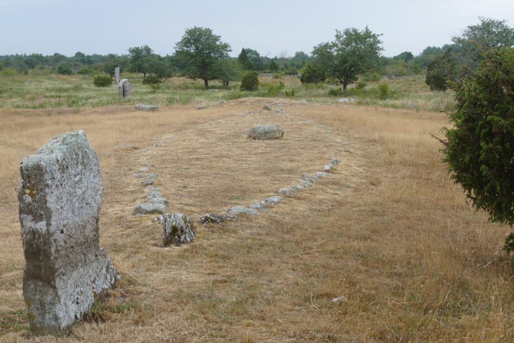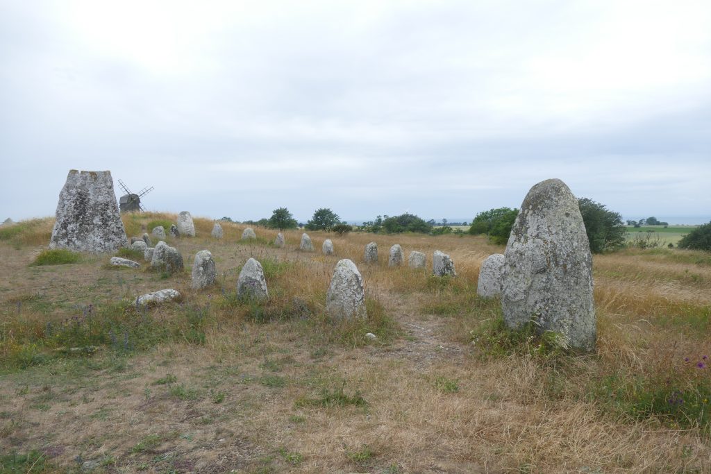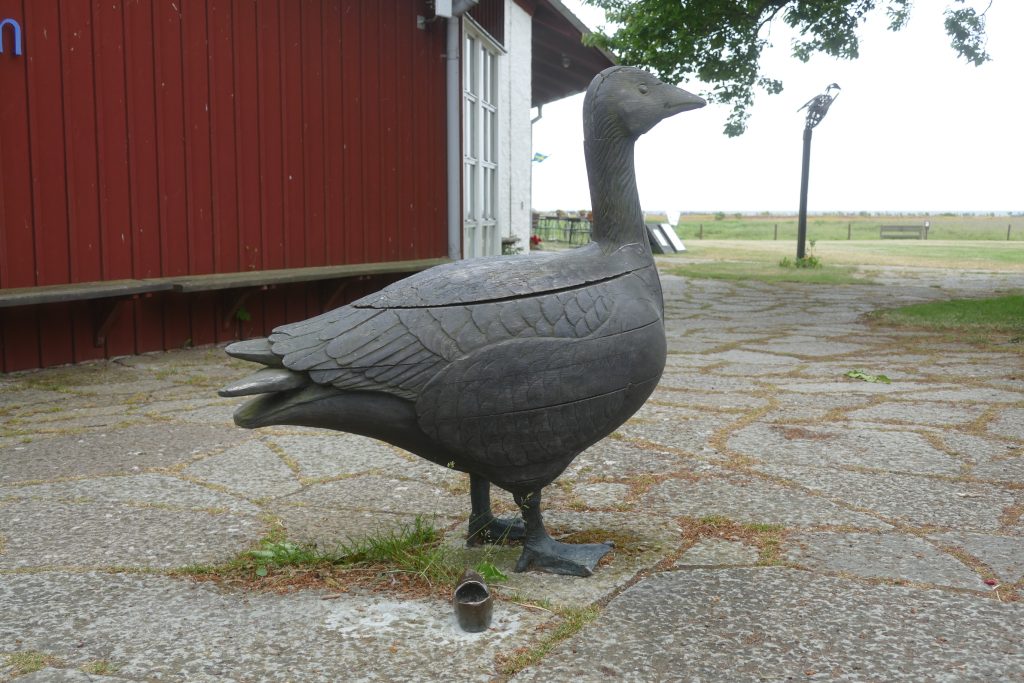 Am Morgen regnet es. Wir fahren ca. 2 km weiter zum Rastplatz Resmo wo sich Väderkvarnar – drei Windmühlen befinden, sowie eine Toilette und Entsorgungsmöglichkeit. Hier warten wir den Regen bis zum Mittag ab. Danach fahren wir weiter in Richtung Süden zum Grabhügel der Mysinge, einem der größten aus Steinen und Erde aufgeschütteten Grabhügel auf Öland. Einer der größten und schönsten frühgeschichtlichen Gräberfelder auf Öland, der Gettlinge Gravfält ist unser nächster Halt. Weiter geht es auf der 136 bis zur Südspitze der Insel, mit dem 41,6 hohen und damit höchsten Leuchtturm in Schweden, dem Långe Jan. Hier befindet sich der Hof, von dem aus Nils Holgerssons wunderbare Reise startete, mit dem Denkmal für die Leitgans Akka von Kebnekaise. Anschließend fahren wir auf der Ostseeseite Richtung Norden bis zur Eketorps Borg, einer rekonstruierten Burganlage, die wir uns aber nur von außen ansehen. Dann wird es Zeit, dass wir uns einen Stellplatz für die Nacht suchen, den wir am Wanderparkplatz des Gösslundaleden finden.