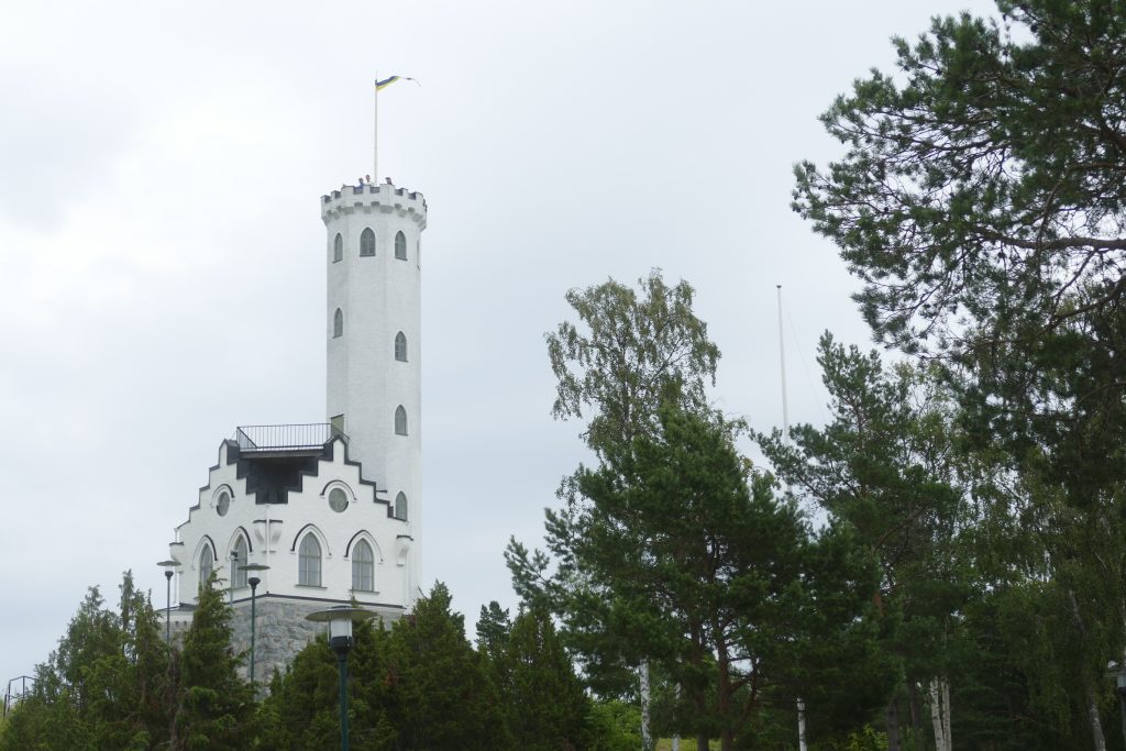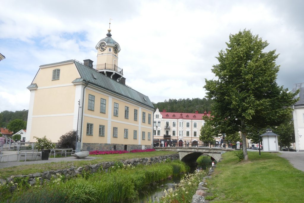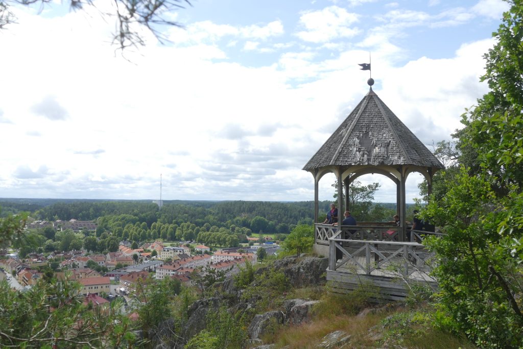 Mit lautem Krachen, Blitz und sintflutartigen Regen weckt uns in der Nacht ein Gewitter. Wir wandern auf dem Norrlandets-Kustled einem 15 km langen Wanderweg, der sich zwischen Engeltofta und Marskärsudden erstreckt. Wir haben uns für das Teilstück des Gråberget ab unserem Parkplatz entschieden. Ein schmaler Waldweg führt durch hügeliges Gelände und bietet mehrere Aussichtspunkte mit zauberhaftem Blick auf das Meer. Als wir das nette Örtchen Bönan erreichen, grummelt es schon wieder bedenklich, sodass wir lieber umkehren. Kaum am Wohnmobil fängt es an zu schütten. So fahren wir weiter bis Söderhamn auf der alten E 4. Das Gewitter begleitet uns mit Blitz, Donner und Platzregen und will heute einfach nicht aufhören. In Söderhamn gehen wir zum Rathaus und hinauf zur Oscarsborg mit ihrem charakteristischen Turm. Vom Turm haben wir einen schönen Blick auf die Stadt mit dem Fluss Söderhamnsån. Als Parkplatz für die Nacht haben wir einen Platz am Fluss gewählt.