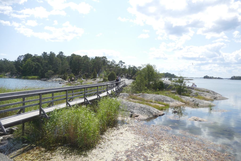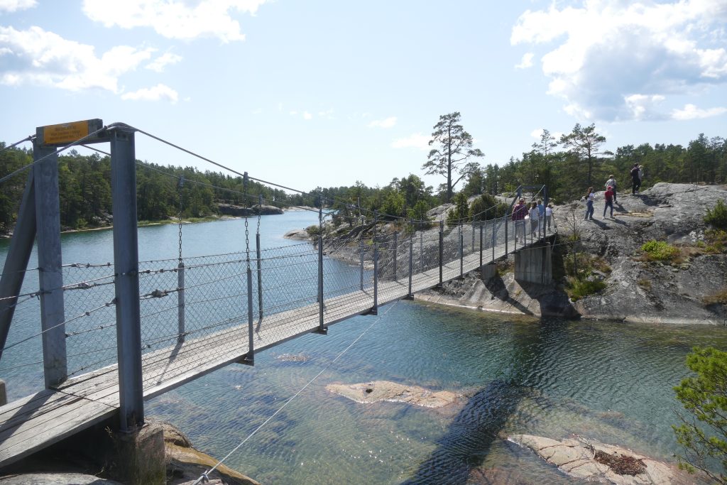 Es liegt inmitten der malerischen Schärenlandschaft an der Küste der Kommune Nyköping. Hier gibt es unzählige Rundwege. Wir gehen über die felsigen Inseln Äspskär und Stora Krokholmen, die über mehrere Hängebrücken und Stege mit dem Festland verbunden sind. Auf dem Weg über die Inseln ist die Ostsee nie weiter als einen Steinwurf entfernt, da die Wege immer entlang der Uferregionen führen. Zwischendurch bieten sich herrliche Ausblicke sowohl über die offene Ostsee bis zum Horizont als auch auf die benachbarten Inseln des Schärengartens.