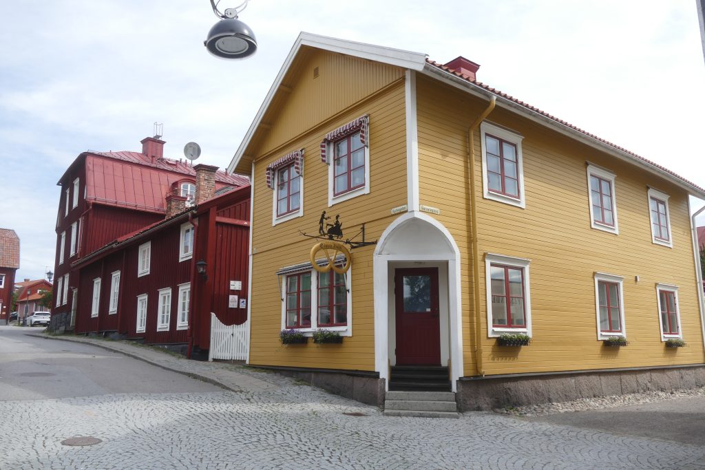 Ein etwas trüberer Tag erwartet uns heute. Wir fahren weiter in Richtung Süden in das Naturreservat Karum, um die fast vollständige Schiffslegung Arche Noah zu besichtigen. Danach verlassen wir die Insel Öland und halten in Kalmar, um in einer Citroen-Werkstatt für unseren Autoschlüssel ein neues Klappschlüssel Gehäuse zu bekommen, denn irgendwie spinnt unsere Alarmanlage. Leider erfolglos, auch in Oskarshamn. Hier können wir jedoch Wasser tanken. Mittlerweile ist es Mittag geworden und wir fahren noch in die Astrid Lindgren Stadt Vimmerby. Vor dem Rathaus mit der Touristeninformation am Marktplatz befindet sich die Statue der Autorin. Mit einem Stadtplan bewaffnet wollen wir gerade losgehen, da entlädt sich eine Wolke. Der Spuk ist schnell vorbei, und wir suchen die Sehenswürdigkeiten der Stadt auf. Wir sind ein wenig enttäuscht, da an den bemerkenswerten Häusern kein Hinweis steht und wir vor einem Rätsel stehen.