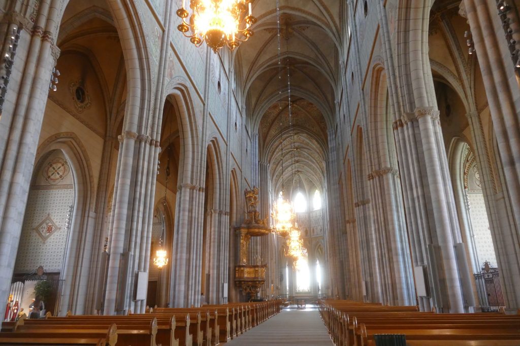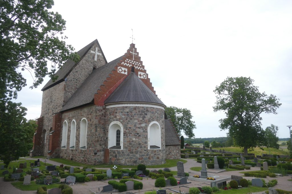 Wir verlassen die Küste, um Stockholm zu umfahren. Auf dem Weg liegt die Kleinstadtidylle Mariefred mit engen Gassen und Holzhäuser am Mälaren (Mälarsee), Schwedens drittgrößtem See. Hauptattraktion ist das Schloss Gripsholm, das prominent am Ufer des Mälaren gelegen ist. Nur wenige Kilometer weiter befindet sich am Mälaren Strängnäs mit einem imposanten Dom. Im Inneren befinden sich fantastische Altarbilder und Fresken an Wänden und Decke. Wir gehen durch das Röda kvarteren (Rote Viertel) in der Lillgatan, die älteste Straße von Strängnäs, mit ihrem Kopfsteinpflaster und den sog. Bürgermeistersteinen, d. h. etwas höher gelegenen größeren flachen Steinen für Fußgänger. Dann kommen wir zum Hofgut Grassagården aus dem 17. Jahrhundert mit einem kleinen Museum. Gleich daneben auf einem Hügel befindet sich die alte Holländerwindmühle, das historische Wahrzeichen aus dem Jahr 1855. Sie bietet Einblick in die landwirtschaftliche Vergangenheit. Da es noch nicht so spät ist, fahren wir noch weiter nach Uppsala und parken in Gammla Uppsala.